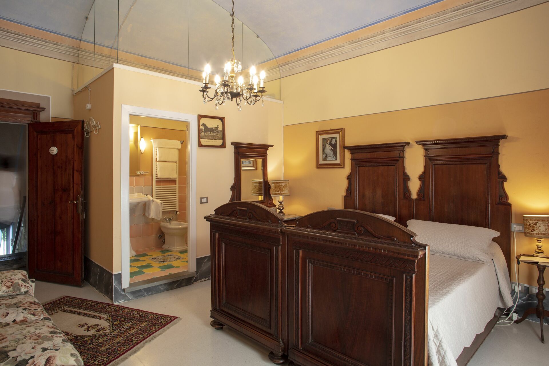 chambre avec salle de bain 1: deux lits à une place, internet WIFI, bassin, wc, bidet, bagnoire, douche, sortie sur la terrasse.