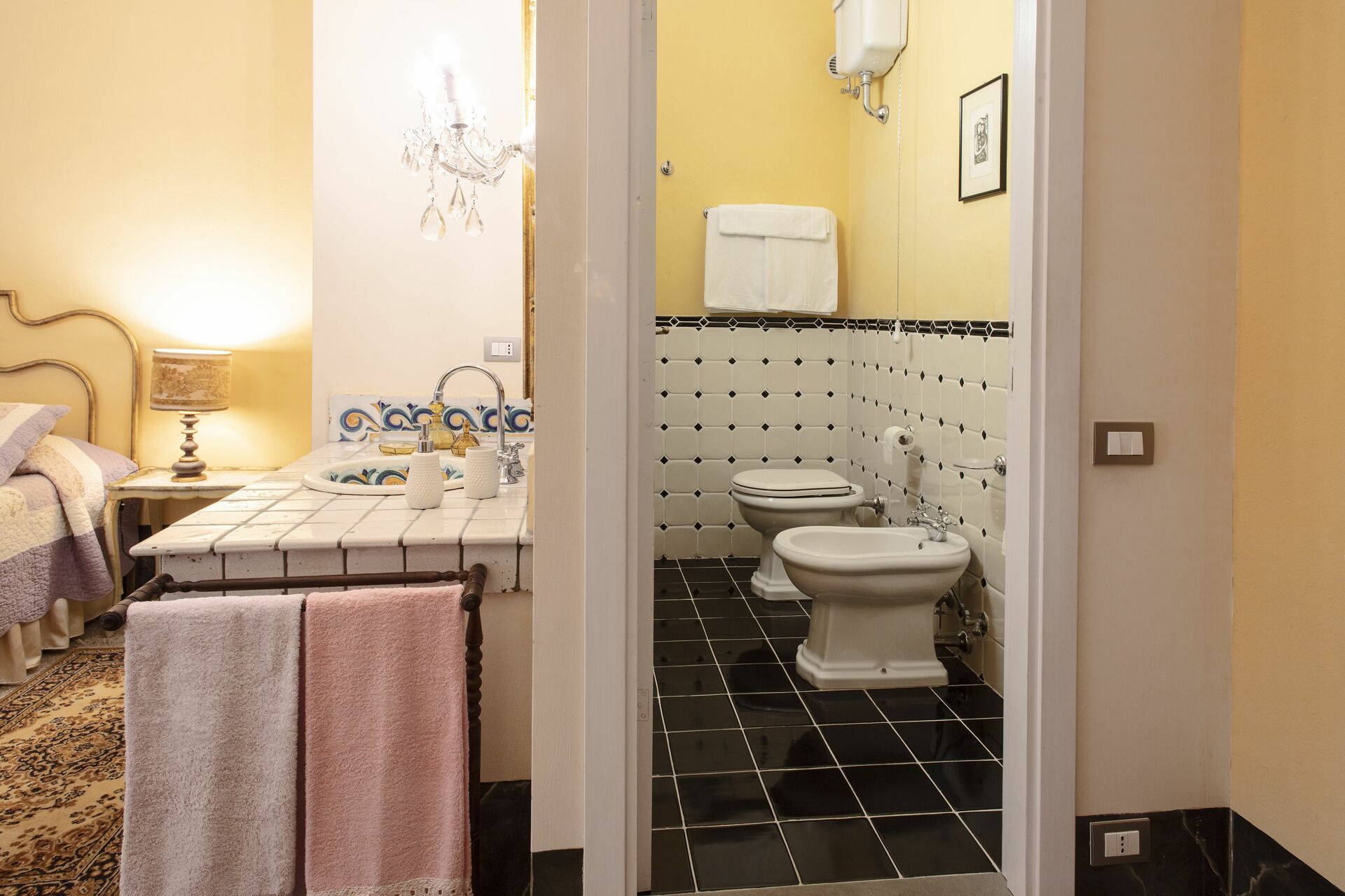 chambre avec salle de bain 2: lit double, internet WIFI, climatisation, bassin, wc, bidet, douche.