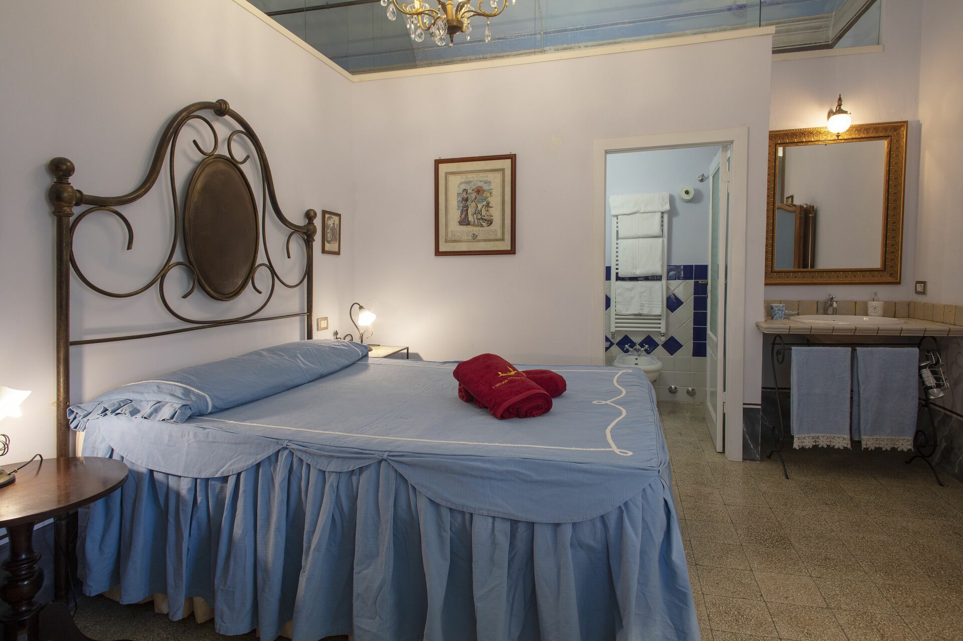 chambre avec salle de bain 1: lit double, lit à une place, internet WIFI, climatisation, bassin, wc, bidet, bagnoire, douche.
