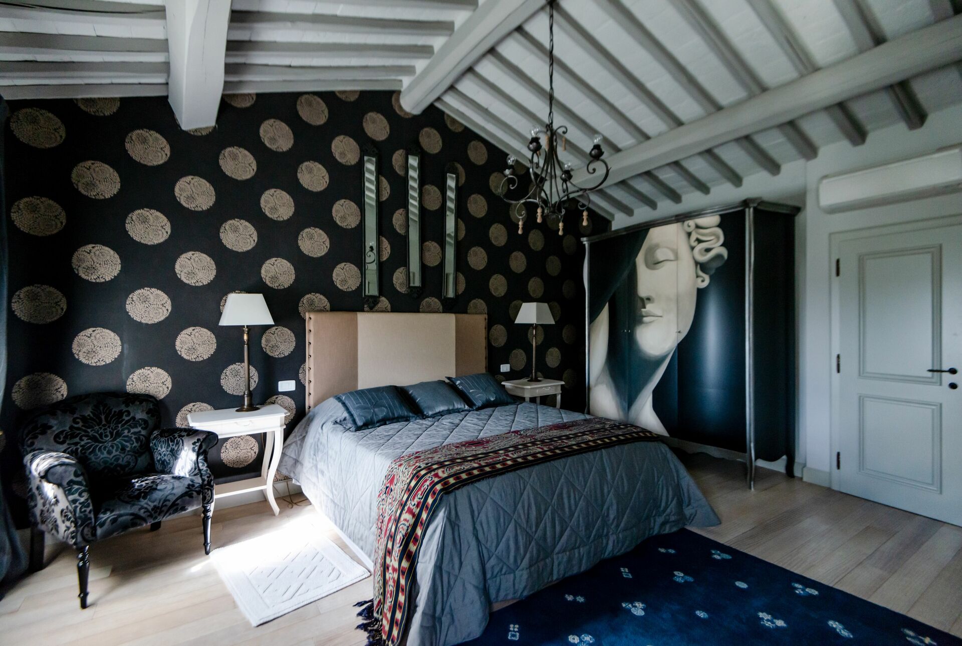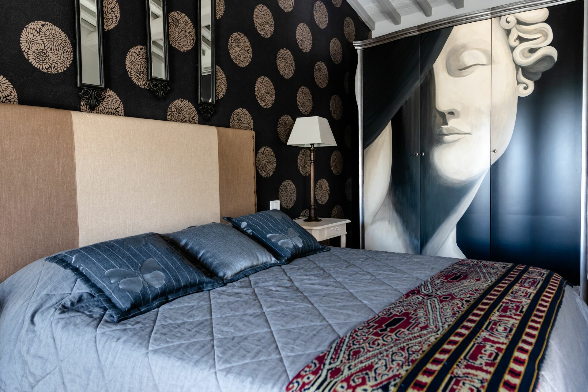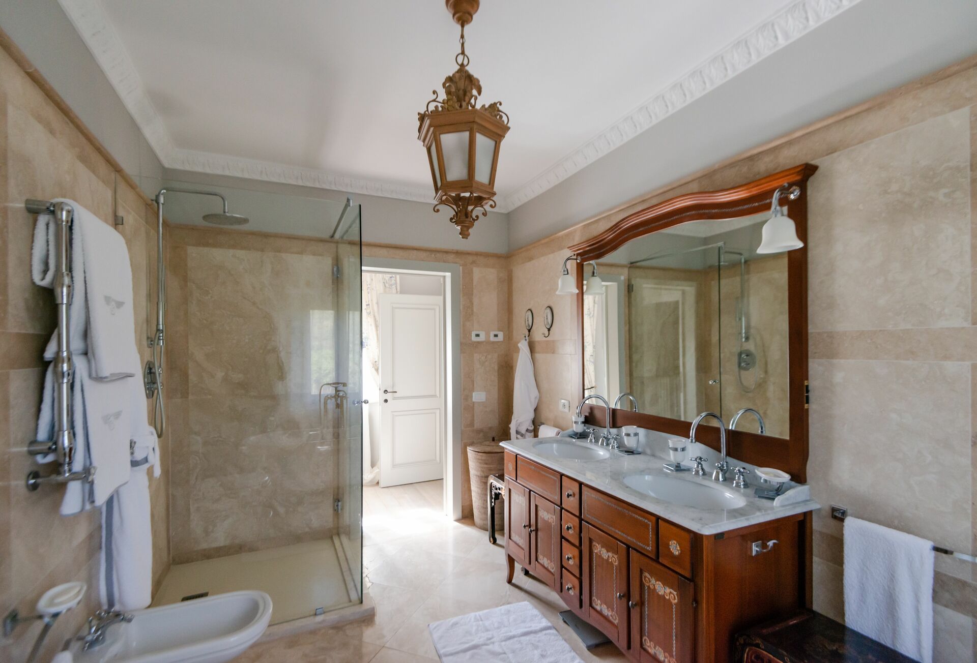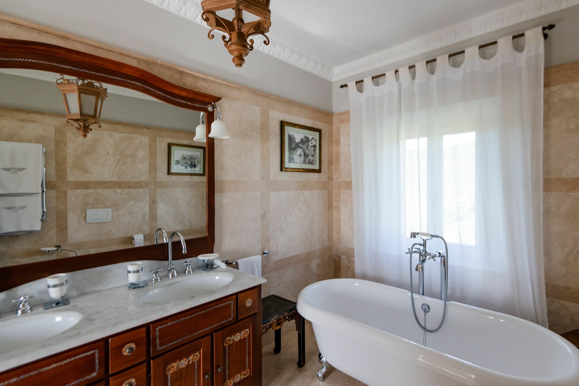 chambre avec salle de bain 1: lit double, internet WIFI, climatisation, moustiquaires, tv satellitaire, fauteuil, bureau, bassin double, wc, bidet, bagnoire, bagnoire.
