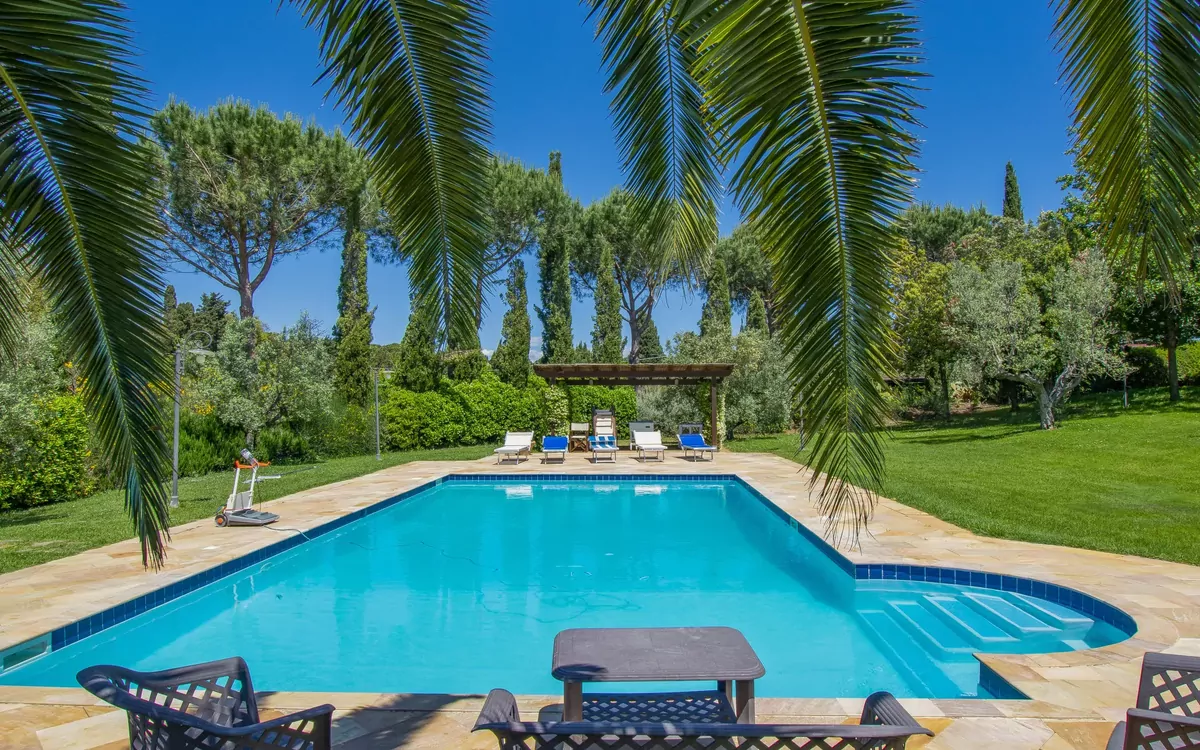 La maison de vacances "Villa Rosa" est située dans la plaine entre Cecina (6 km) et Bolgheri (11 km), entourée de prairies et d'oliviers, dans un grand jardin avec palmiers, oliviers, cyprès et buissons de lavande, à seulement quelques kilomètres de la mer. La propriété comprend un terrain clôturé d'environ 1600 m², d'où la vue s'étend jusqu'à la mer. Belle maison individuelle "Villa Rosa", de 2 étages, environnée par les arbres et champs. Situation tranquille, ensoleillée, à 6 km de la mer. A usage privé: jardin propice à la détente, piscine (8 x 12 m, disponibilité saisonnière: 01.Mai. - 30.Oct.) avec systeme d'électolyseur au sel. WC dans l'espace piscine, douche extérieure, bain à remous  , pergola, entretien de la piscine par le propriétaire/jardinier. Infrastructures de la Maison: Connexion WIFI, chauffage central, lave-linge. Accès en voiture (200 m chemin non goudronné). Place de parking (pour 3 voitures, couvert). Magasins 5 km, supermarché 5 km, restaurant 4 km, arrêt de bus 3 km, gare ferroviaire "Cecina" 7 km, centre thermal "Donoratico" 18 km. Marina 22 km. Attractions à proximité: Pisa 70 km, Lucca 90 km, Firenze 120 km.