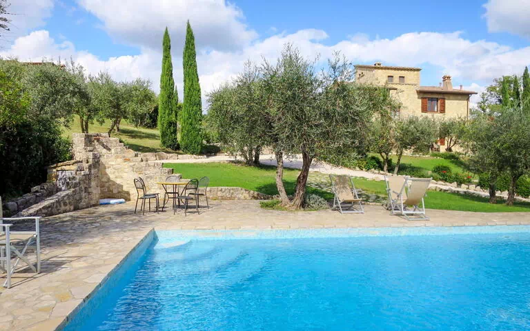 Belle maison de campagne confortable, individuelle "Roseto", environnée par les arbres, prés et champs. 3 maisons dans le même complexe de vacances. À 4 km du centre de Collazzone, à 14 km du centre de Todi, à 40 km du lac, dans la verdure. A usage privé: terrain 3'000 m2 avec pelouse et arbres, pré, piscine (12 x 6 m, profondeur 150 cm, 02.05.-26.09.). Douche extérieure. Infrastructures de la résidence: sauna, salle fitness (en sus). Massage (en sus). Bains de vapeur (hammam) (en sus). Jacuzzi (en sus). Location de bicyclettes. Cuisinier possible (en sus). Place de parking (pour 2 voitures). Supermarché 2.5 km. Les lacs connus sont facilement accessibles: Lago di Trasimeno 40 km. Veuillez noter: voiture recommandée. Adapté à l'organisation d'évènements. Le propriétaire n'accepte pas les groupes de jeunes. Vente locale de produits de la ferme. La propriété référencée 615.1,616.1 est située sur le même terrain.
