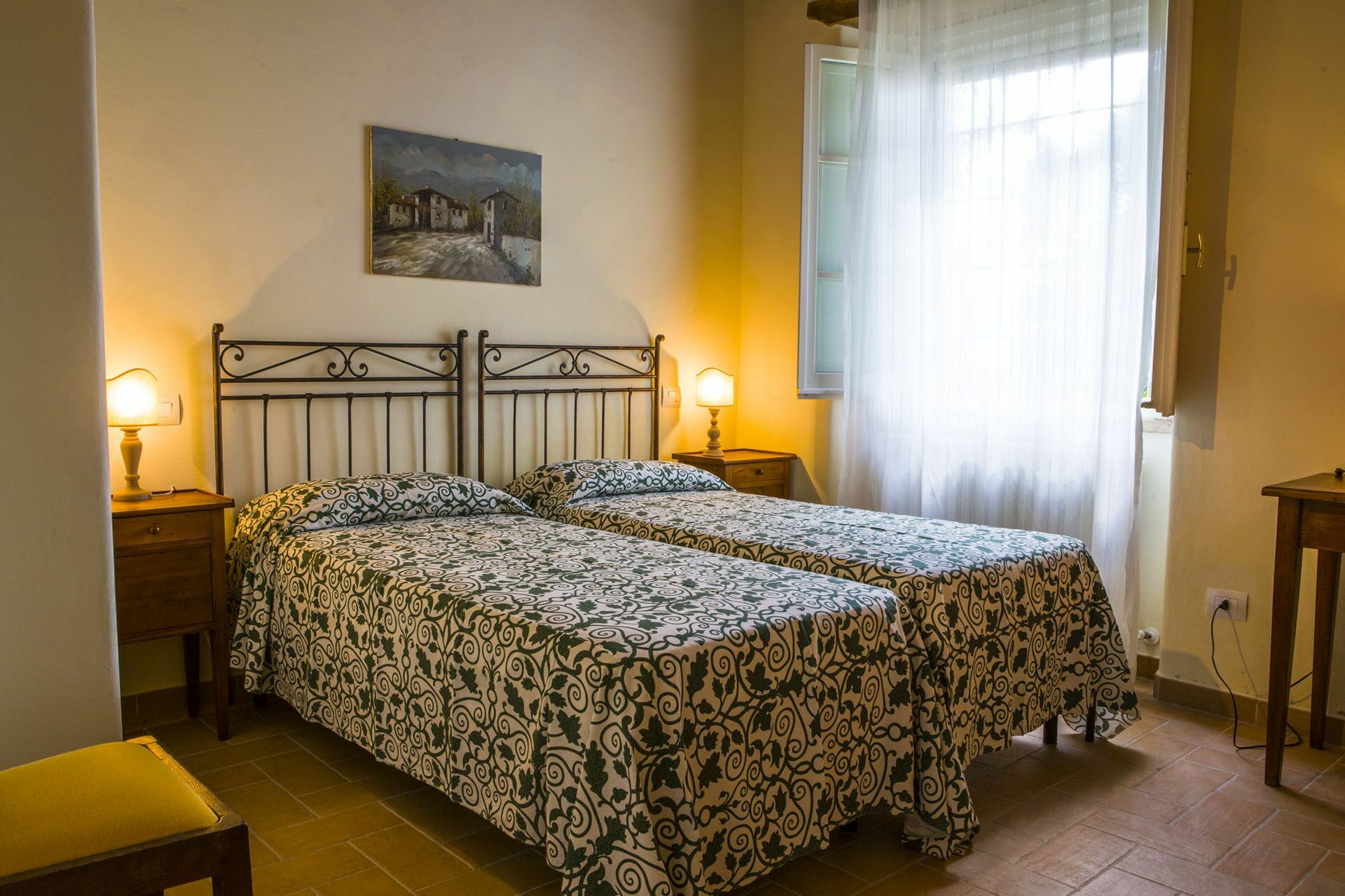 chambre avec salle de bain 2: deux lits à une place, internet WIFI, bassin, wc, bidet, douche.