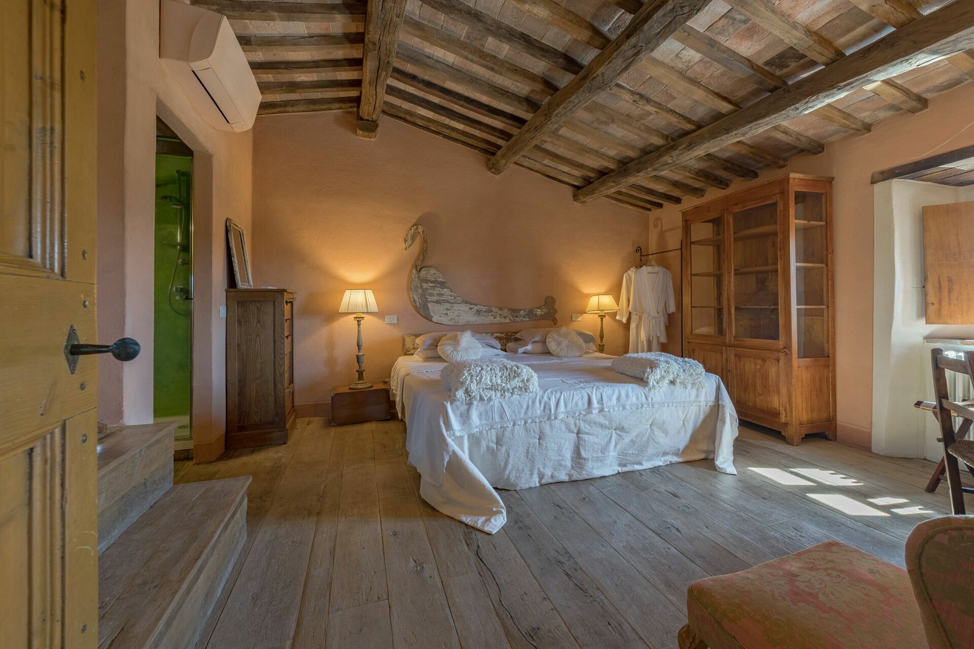 La propriété est idéalement située dans le centre de Pienza, Italie, dans la région touristique "Val D'orcia" et à seulement 15 km de Montepulciano. La location de vacances La Villa Del Cigno Bianco est un jolie logement en pierre (500 mètres carrés) qui offre air conditionné, piscine privée et internet wi-fi. La propriété peut accueillir comfortablement jusqu'à 12 personnes dans six chambres à coucher avec sept salles de bain. Dans les villes voisines il y a des magasins locaux où vous pouvez trouver des produits frais et d'autres articles, mais si vous avez besoin d'un grand centre commercial il y en a un situé juste à 17 km de la propriété où vous pouvez acheter denrées alimentaires et autres produits.