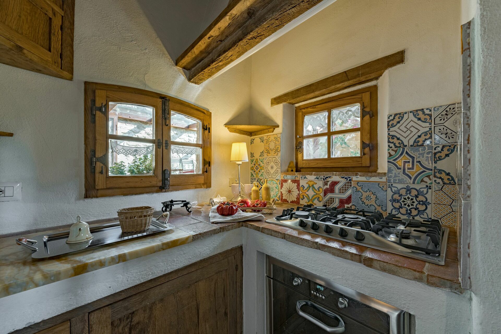 cuisine: cuisine bien équipée, table à manger, lave-vaisselle, réfrigérateur, congélateur, four micro-onde, cuisinière, four, fer à repasser, machine à café italienne, internet WIFI, climatisation, sortie sur le jardin.