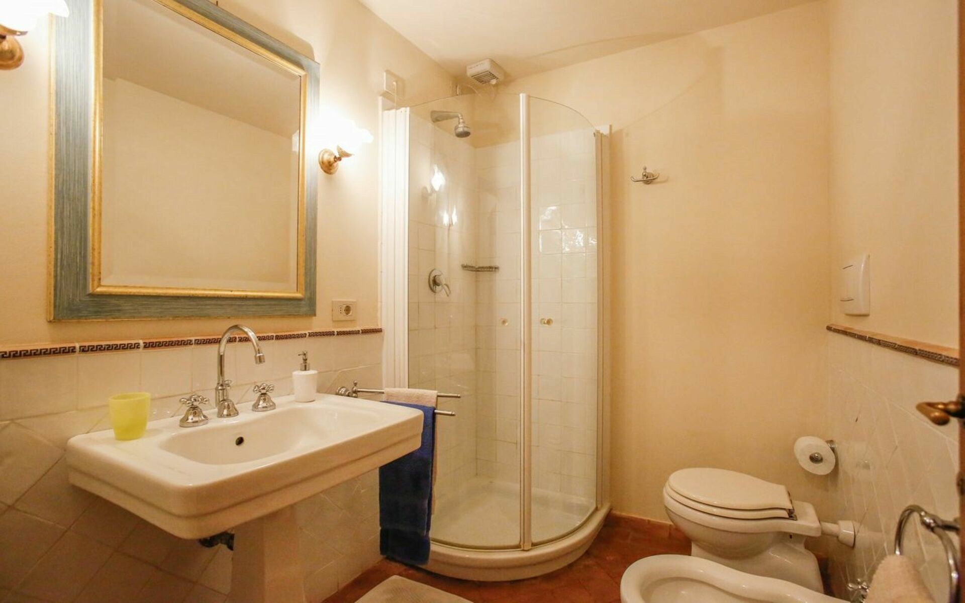 salle de bain 1: bassin, wc, bidet, douche, sèche-cheveux.