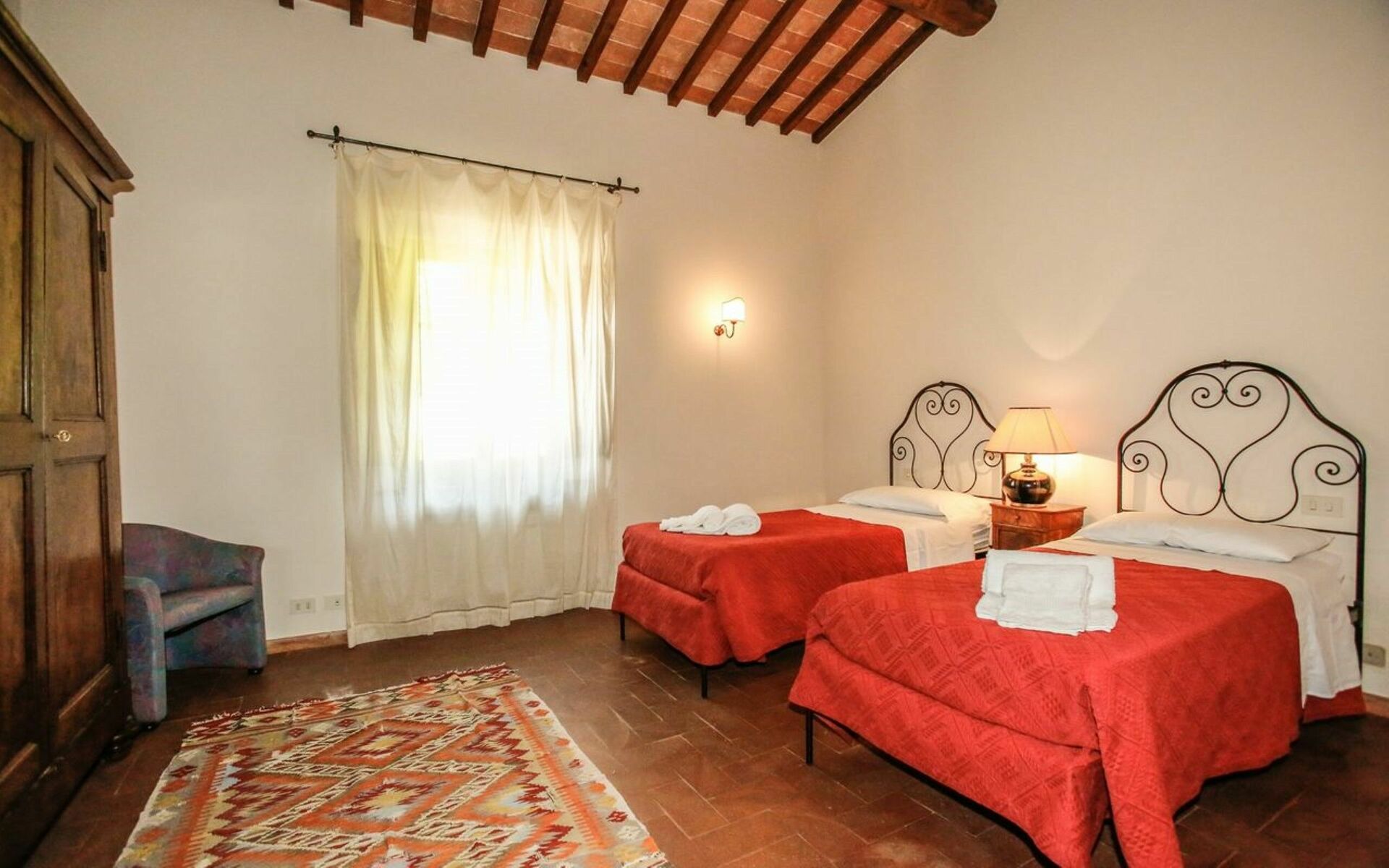 chambre à coucher 2: deux lits à une place, fauteuil.