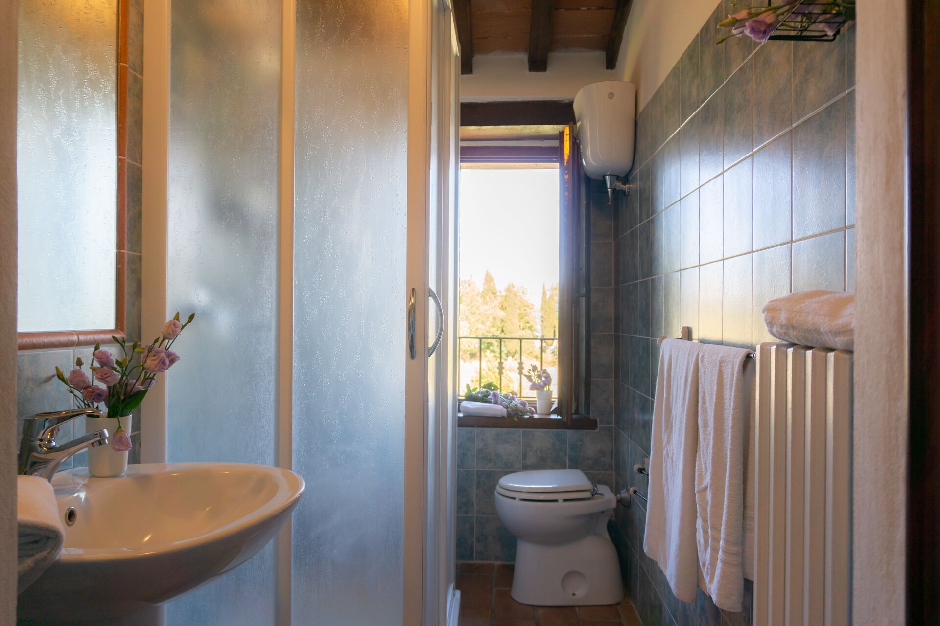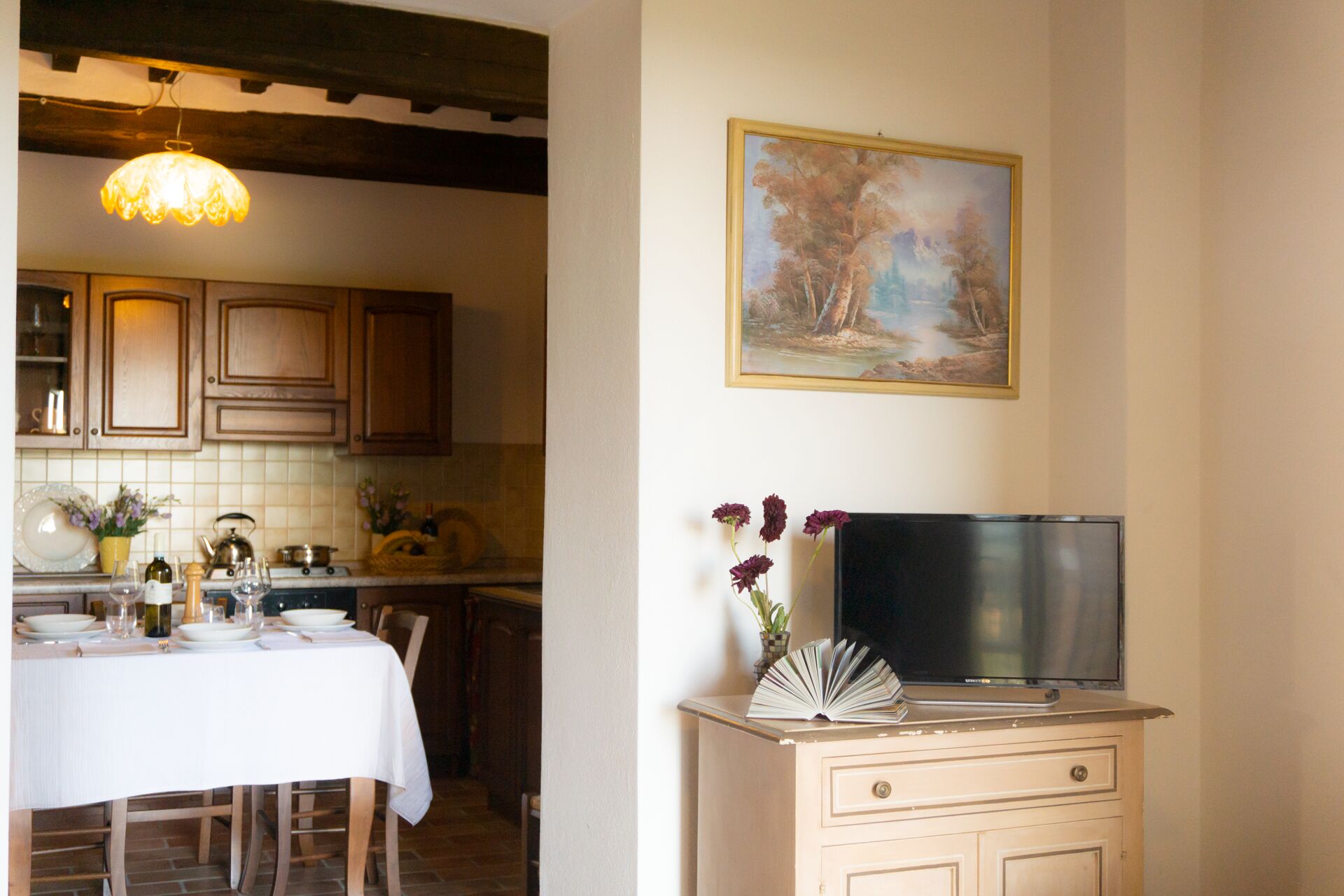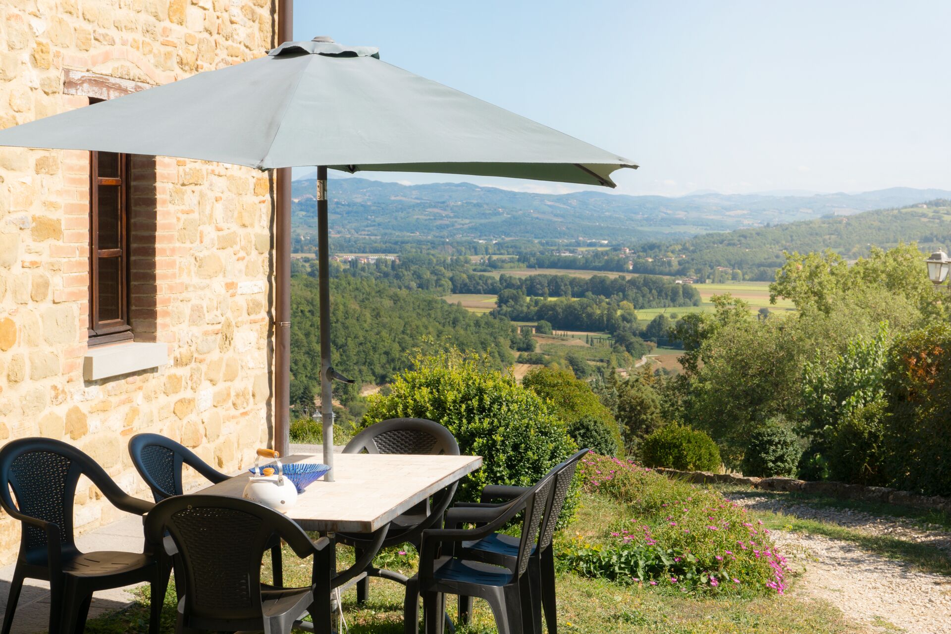 La plupart des gens aiment visiter les villes et les villages tout près pendant les vacances, donc pour votre référence vous trouvez ici est une liste des lieux populaires avec les distances (à vol d’oiseau) en voiture depuis la propriété:Cortone 34 km, Gubbio 49 km, Arezzo 56 km, Pérouse 60 km et Montepulciano 63 km.