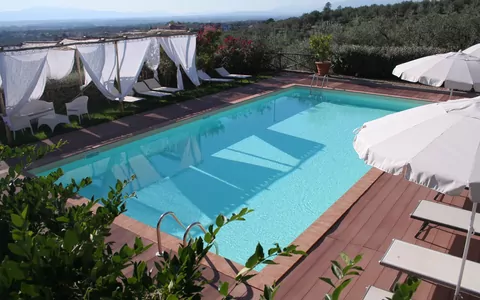 La piscine est partagée avec d'autres clients: la propriété est composée de 6 chambres (B&B) et un appartement séparé, qui est, en effet, Il Fienile.
