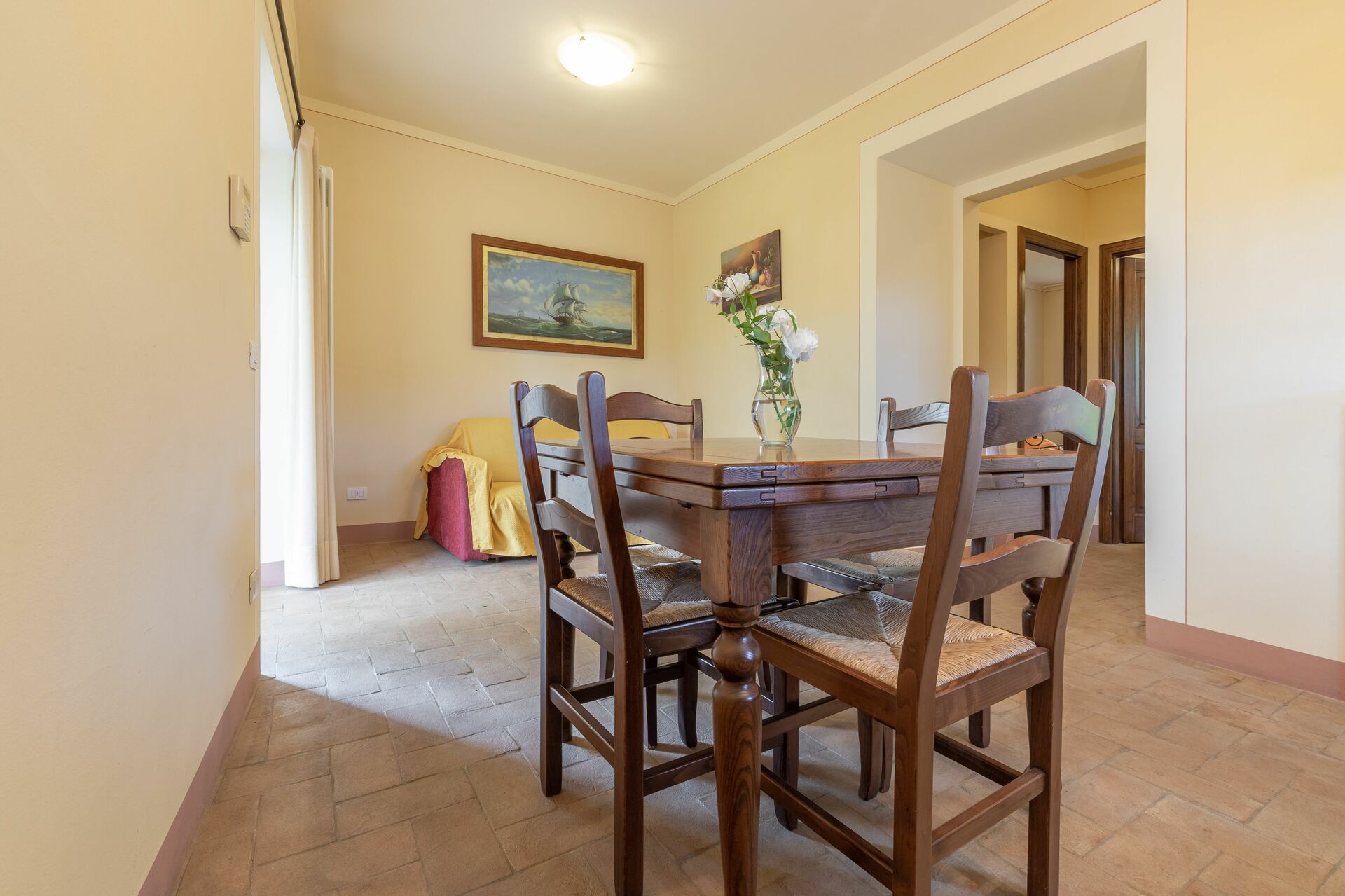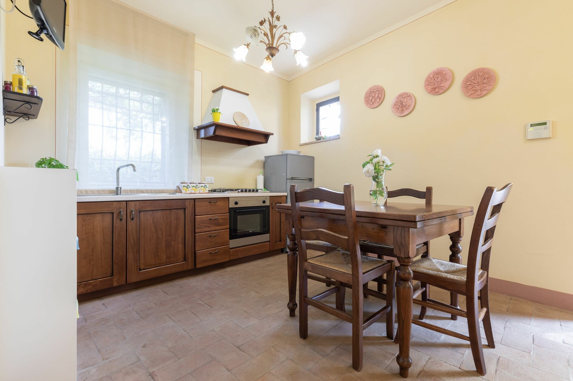 à l'arrivée vous serez reçus par le propriétaire, ou une personne de sa confiance, et vous trouverez une jolie propriété, propre et bien entretenue, avec vue sur montagnes et les collines idéale pour des vacances relaxantes en Toscane. Pour votre plaisir vous trouverez une piscine à partager où vous pouvez vous détendre tout en dégustant une bonne boisson fraîche après une active journée de achats. Dehors vous trouverez également un barbecue, terrain de jeu et bain à remous. Si vous aimez cuisiner pour la famille et les amis il y a une cuisine bien equipée y compris machine à café, four micro-onde, grille-pain, cuisinière et réfrigérateur, ainsi que, assez de vaisselle et couverts jusqu'à quatre personnes. Si vous préférez dîner «al fresco», il y a à votre disposition un jardin où vous pourrez profiter du beau temps tout en mangeant en plein air.