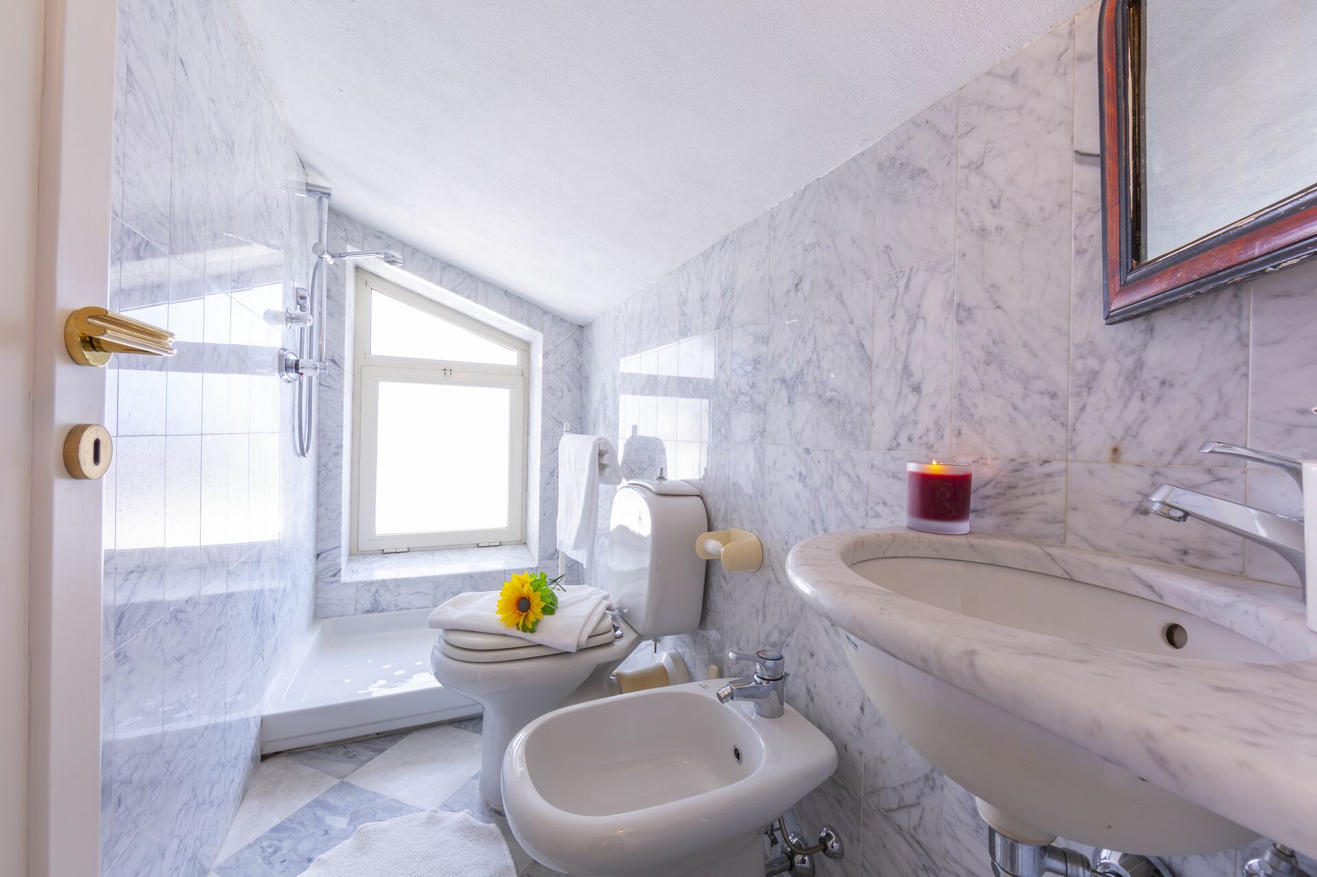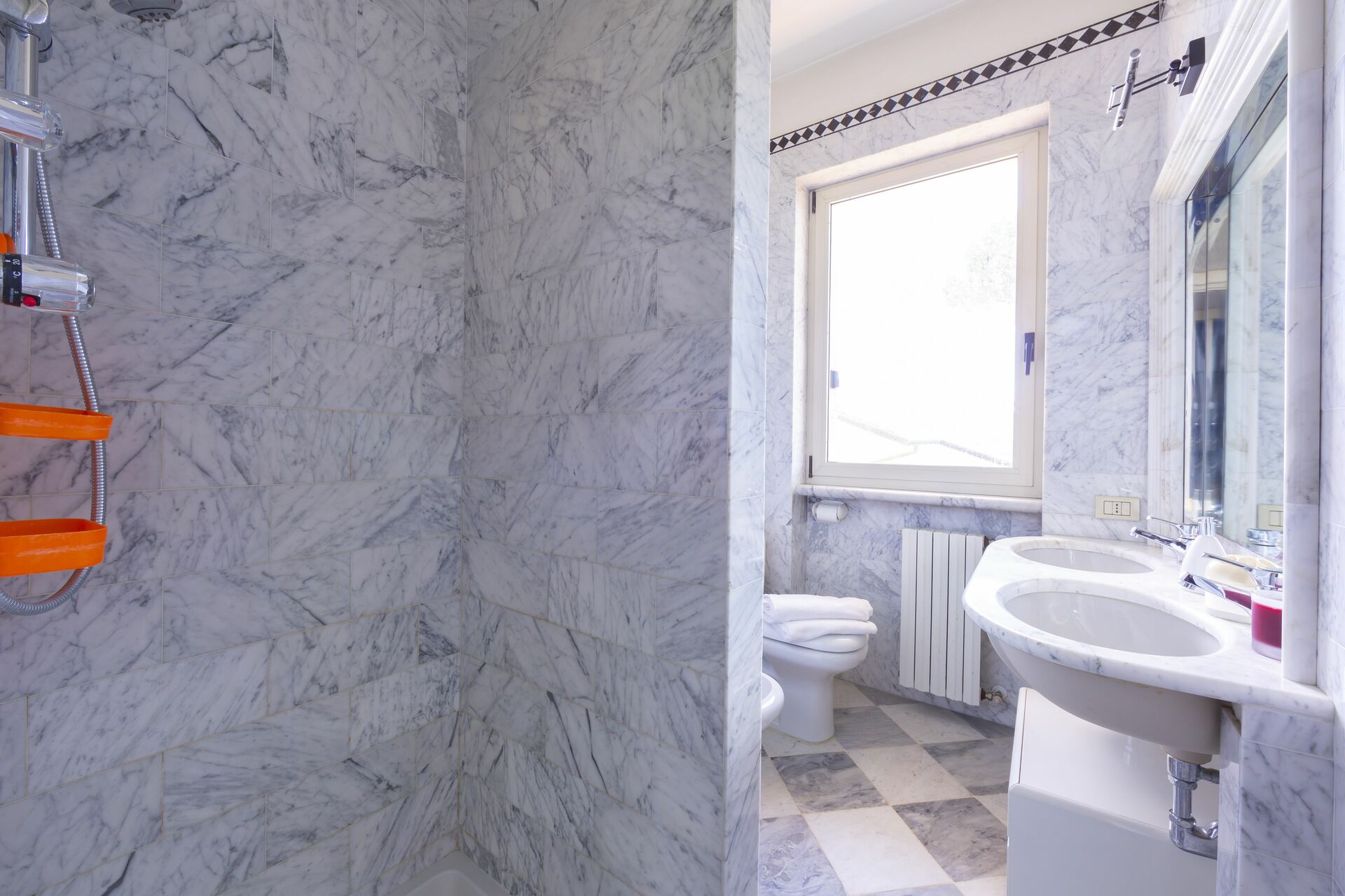 salle de bain 1: bassin, wc, bidet, douche.