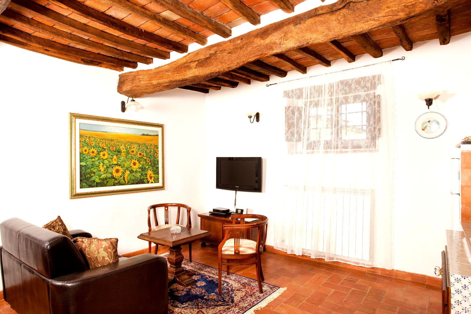 à l'arrivée à Il Casale Di Quirina vous trouverez une jolie propriété, propre et bien entretenue, avec vue sur montagnes et les collines parfaite pour des relaxantes vacances en Toscane. Après une fatigante journée de visites, passez du temps avec la famille et les amis en bord de piscine en dégustant un verre de vin, un moyen idéal pour vous détendre à la fin de la journée. En plein air vous trouverez également une véranda, un barbecue et terrain de jeu. Chaque appartement dispose d'un séjour, d'une chambre à coucher, une salle de bain et une cuisine avec beaucoup d'ustensiles, de vaisselle and de couverts. Nombreux de personnes qui voyagent avec des amis préfèrent une résidence avec plusieurs structure où ils peuvent passer du temps ensemble dans les espaces communs, tel que la piscine ou le jardin, mais qui ont encore leurs propres appartements privés.