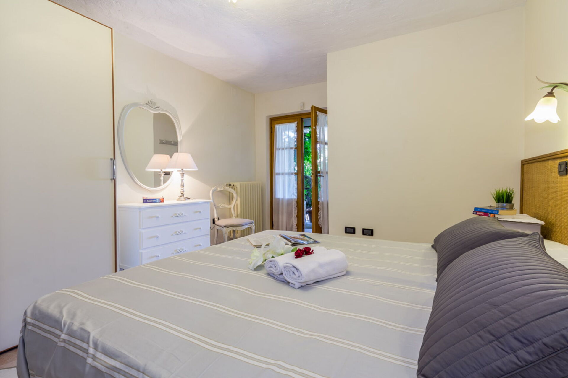 chambre à coucher 1: lit double, internet WIFI, sortie sur le jardin.