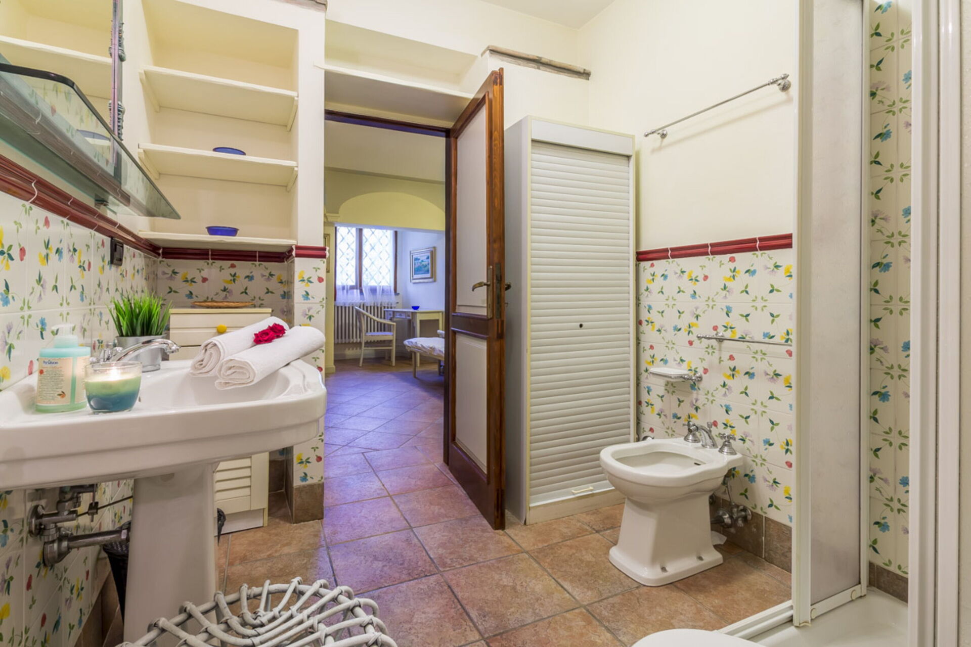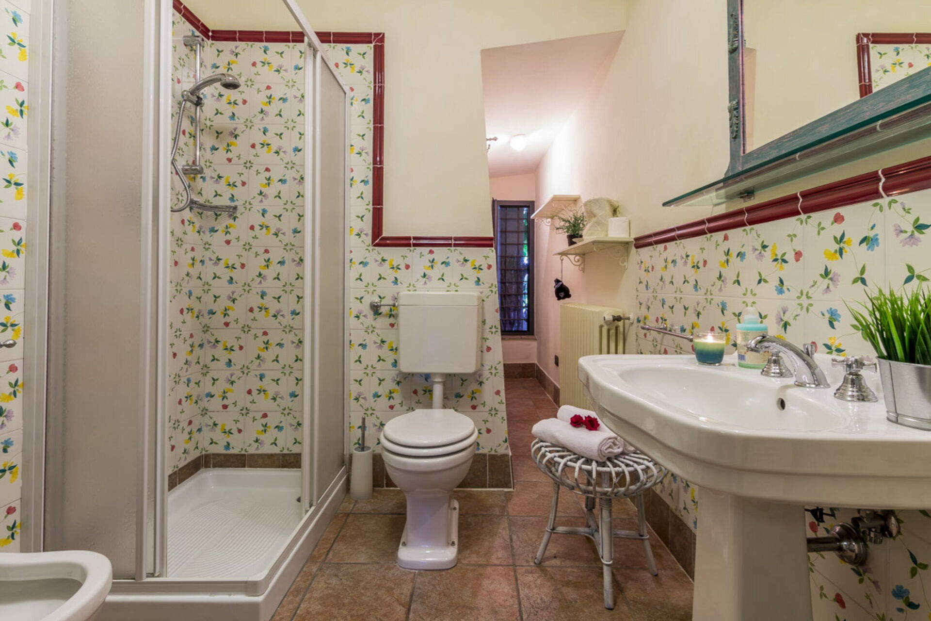 salle de bain 1: bassin, wc, bidet, douche.