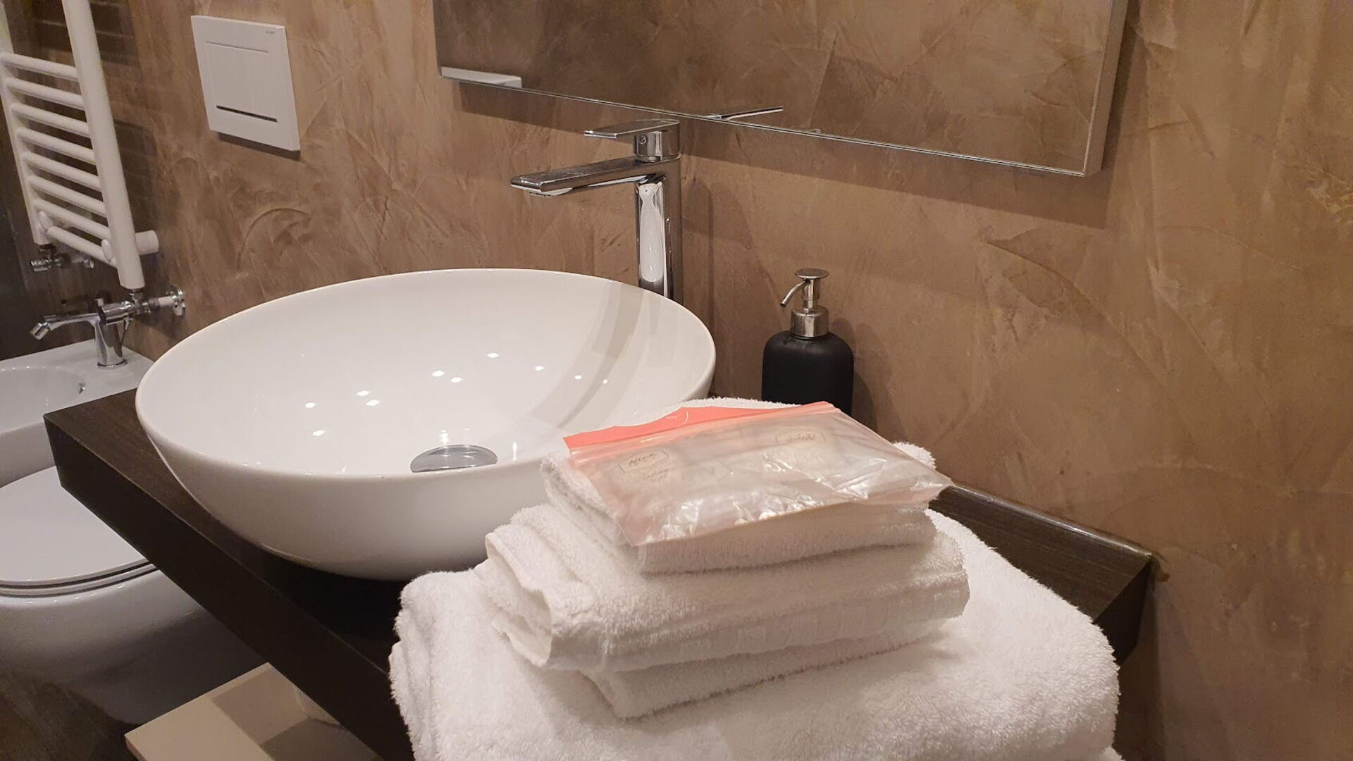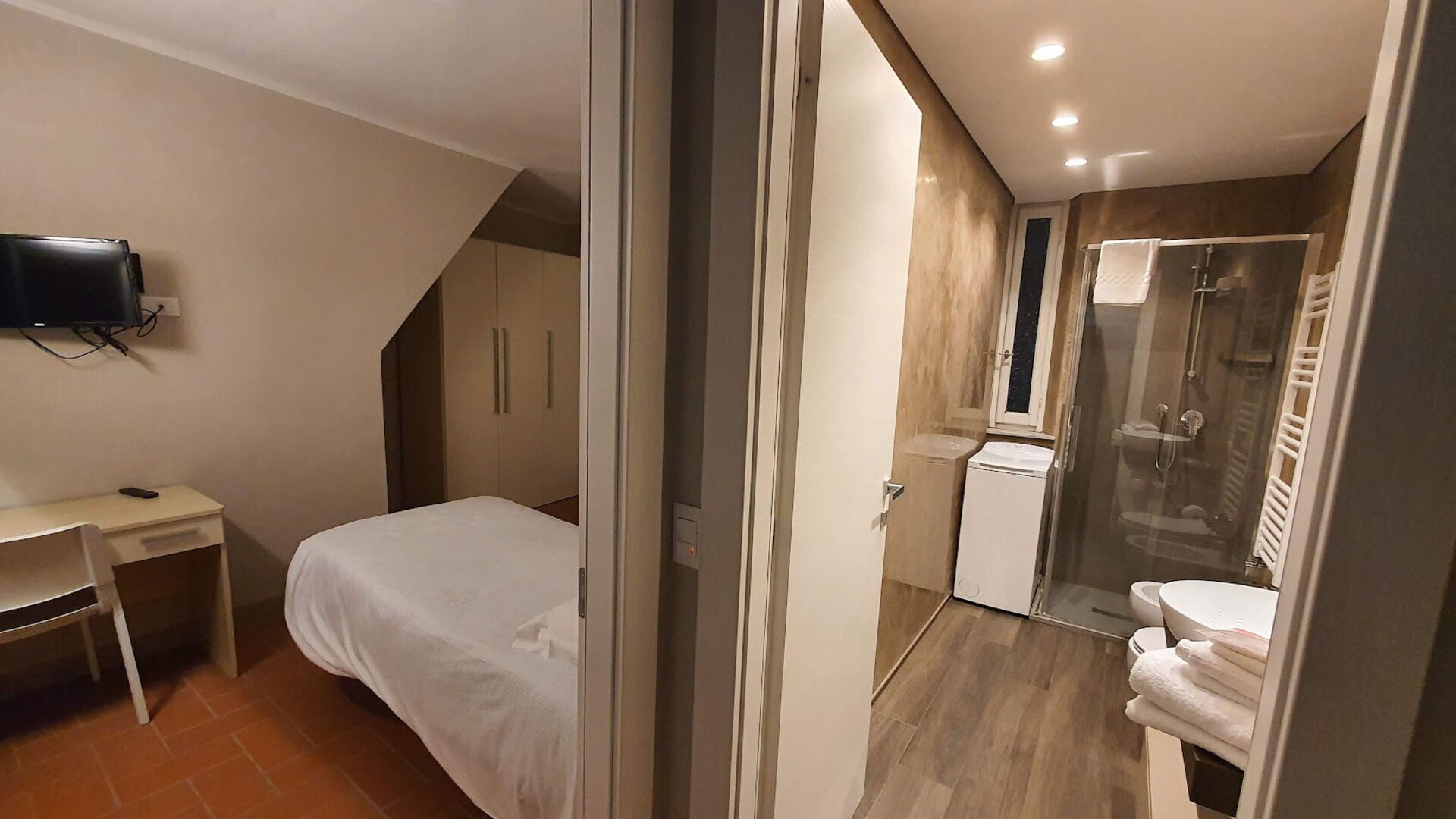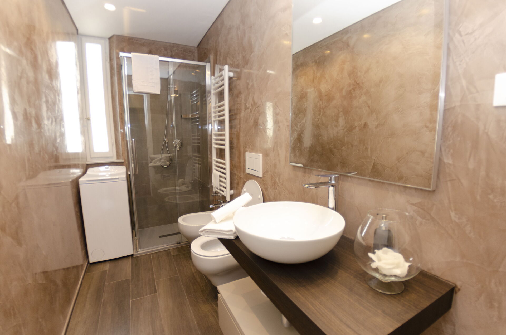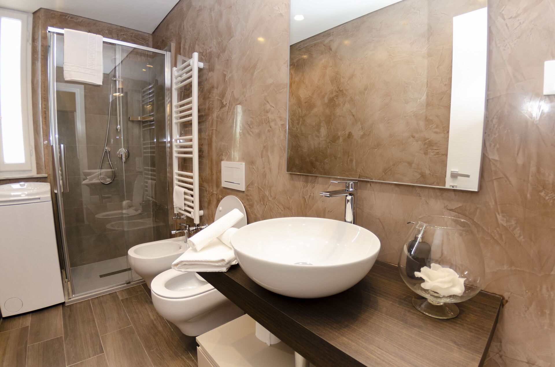 salle de bain: bassin, wc, bidet, douche, lave-linge.