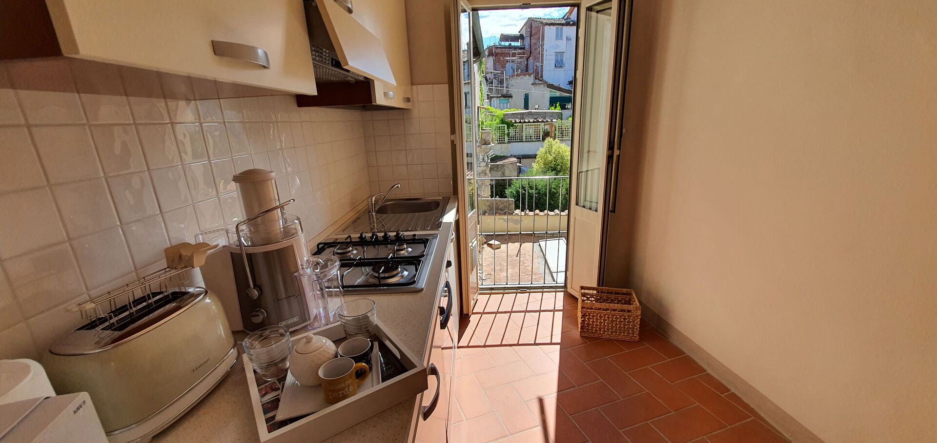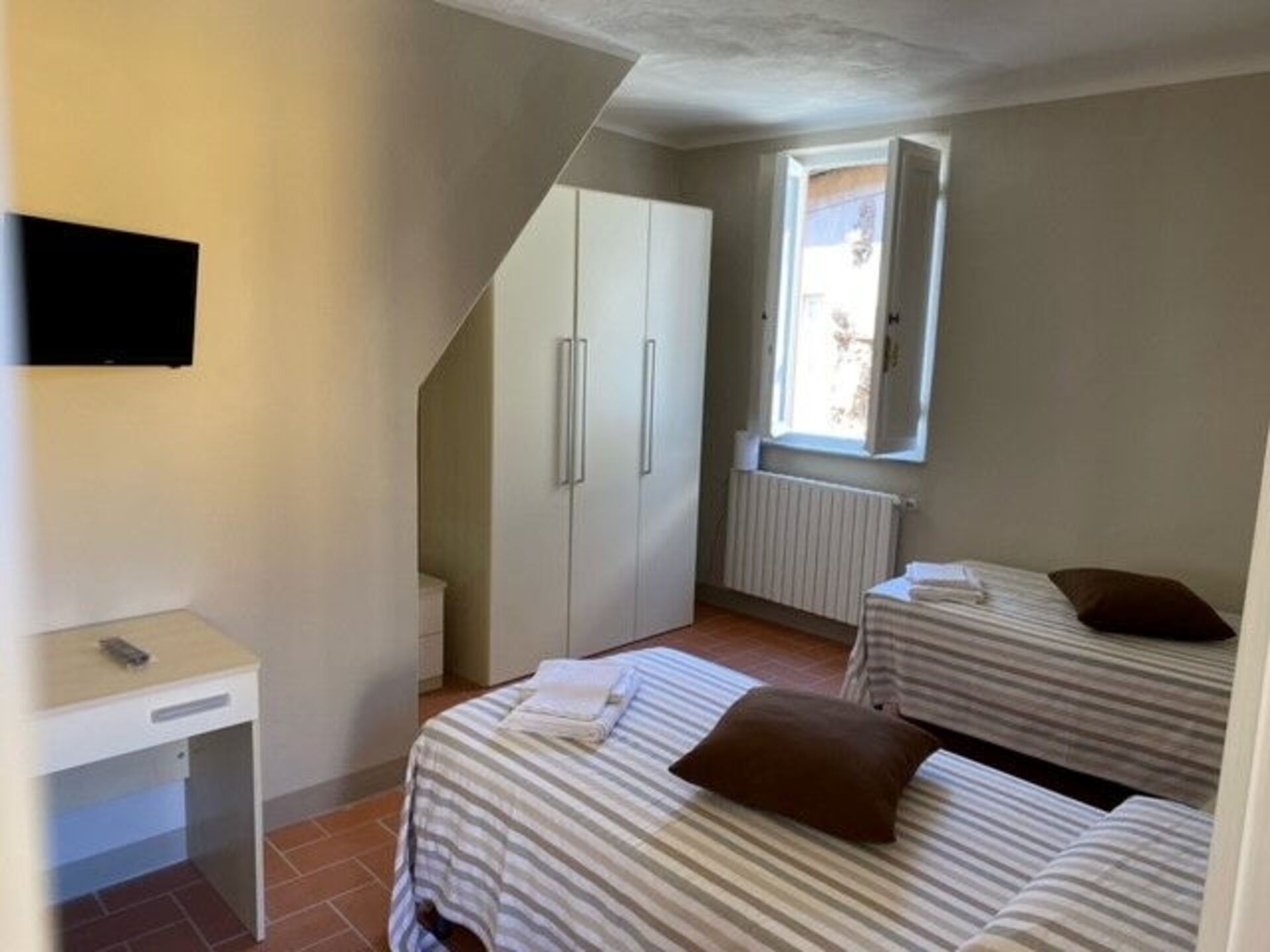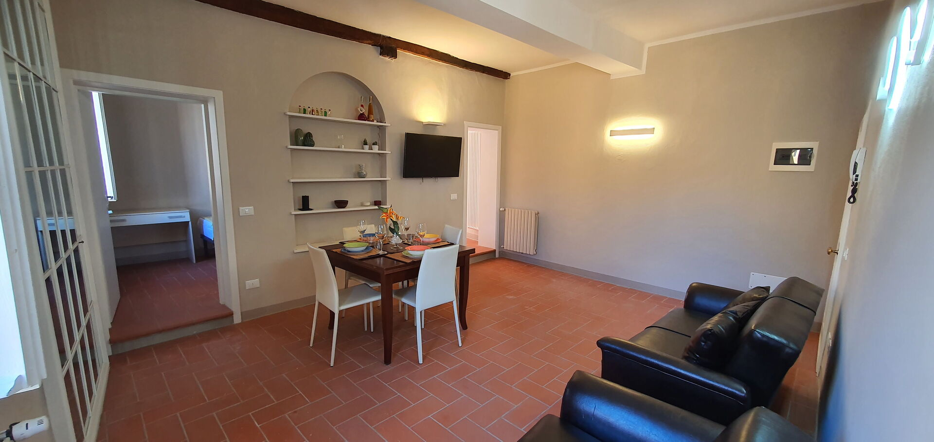 à l'arrivée vous serez reçus par le propriétaire, ou une personne de sa confiance, et vous trouverez une jolie propriété, propre et bien entretenue, avec vue sur la ville idéale pour des vacances tranquilles en Toscane. Peu importe comment vous passez vos journées... visites, shopping, visites de musées ou tout simplement en vous baladant à la campagne, quand vous arrivez à la maison, vous pouvez vous détendre avec votre famille et vos amis et conclure au mieux un autre jour de vacances en Toscane. Si vous aimez cuisiner pour la famille et les amis il y a une cuisine bien equipée y compris machine à café, four micro-onde, grille-pain, cuisinière et réfrigérateur, ainsi que, assez de vaisselle et couverts jusqu'à cinq personnes.