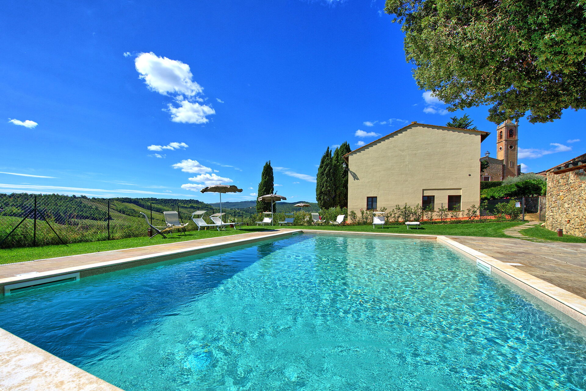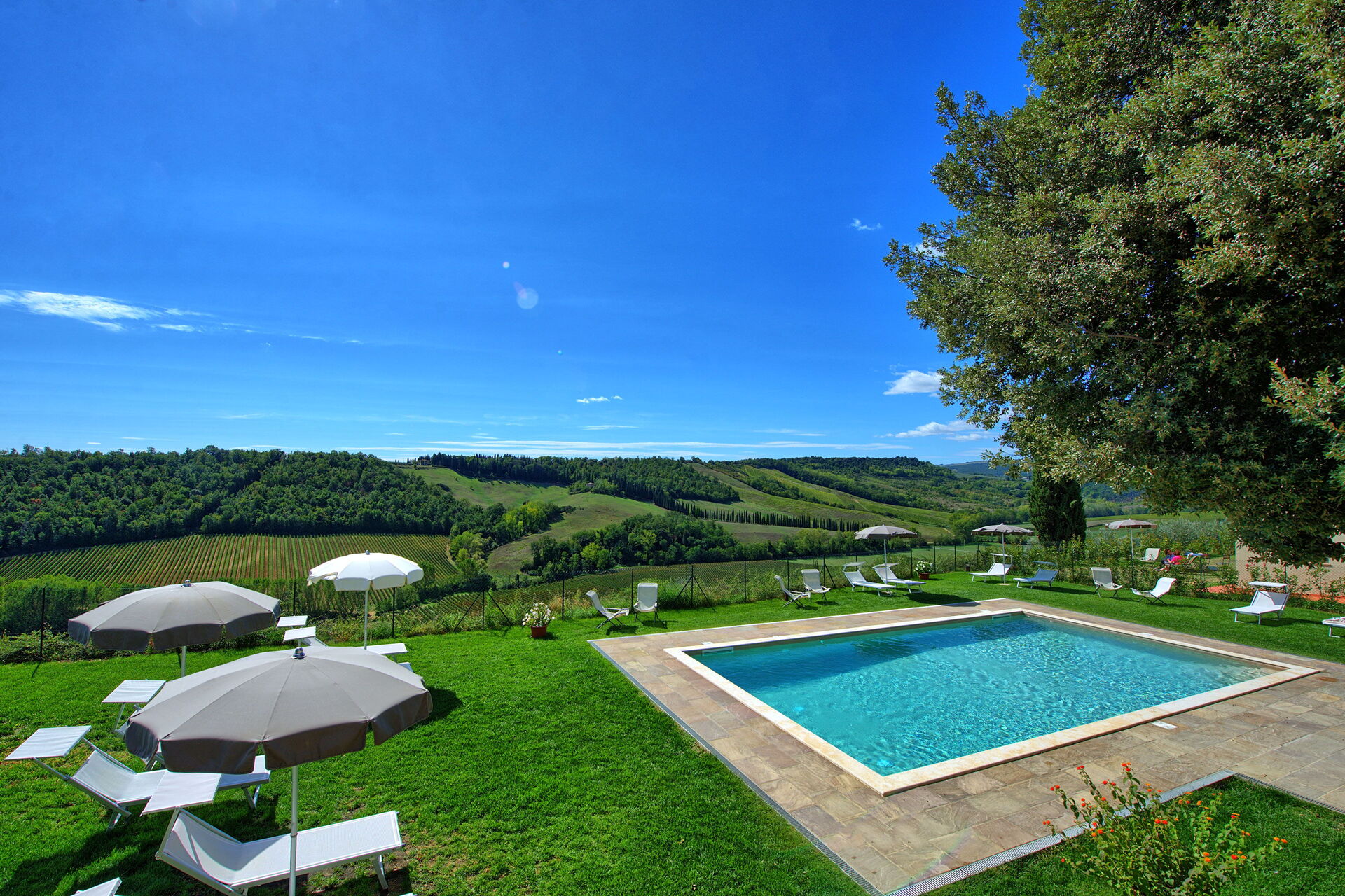 Grande propriété localisée au sommet d’une colline, à quelques kilomètres de San Gimignano, complètement entourée de vignes et d’oliviers.