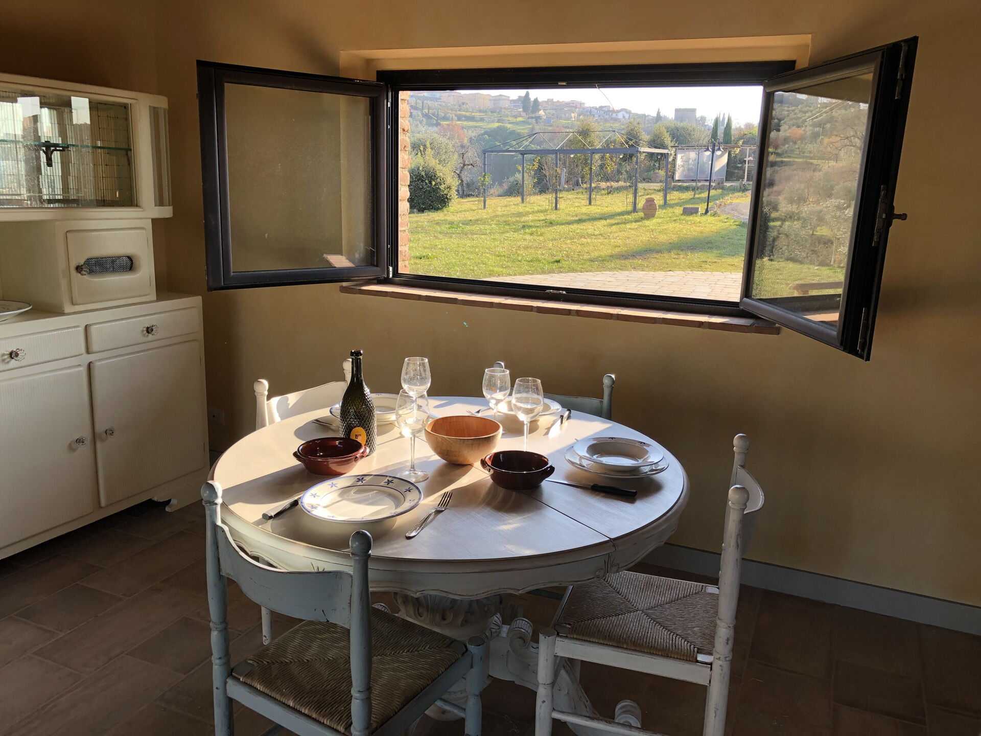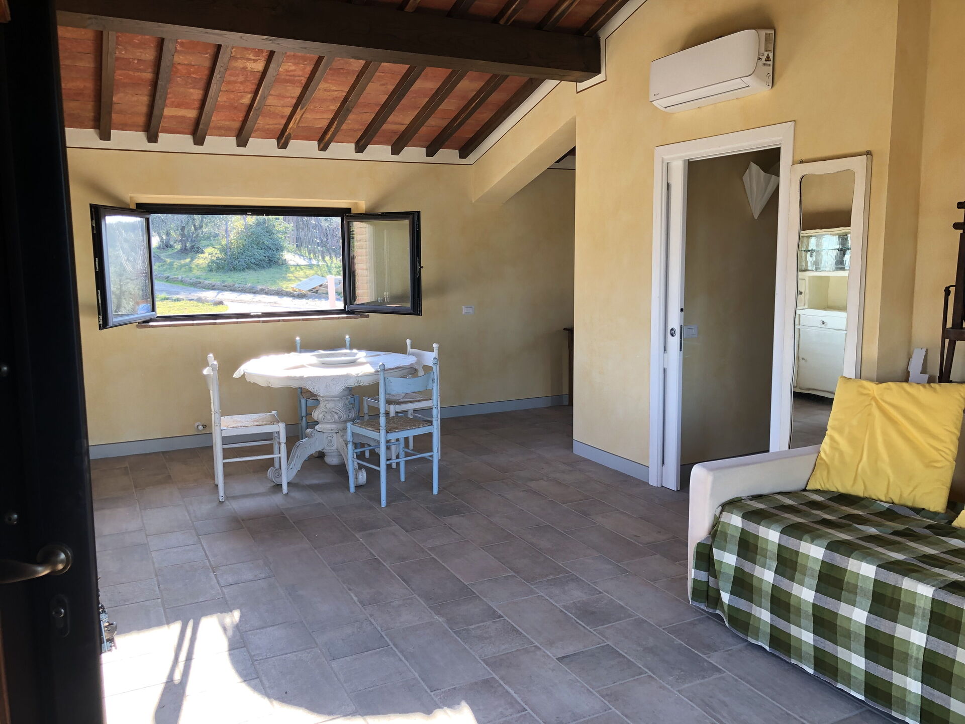 La propriété, située à environ 1 km de Montaione et louée comme un seul environnement d'environ 300 mètres carrés, se compose de trois appartements, dont deux communiquent entre eux et un autre se trouve dans une petite dépendance. En face du bâtiment principal, nous trouvons une charmante "salle de fête", entièrement en bois et entourée de grandes fenêtres, équipée de table et de chaises, de fauteuils, d'un four à bois, d'un barbecue et d'une cuisinière. Cette salle de fête peut être réservée sur demande, moyennant un supplément sur place.
