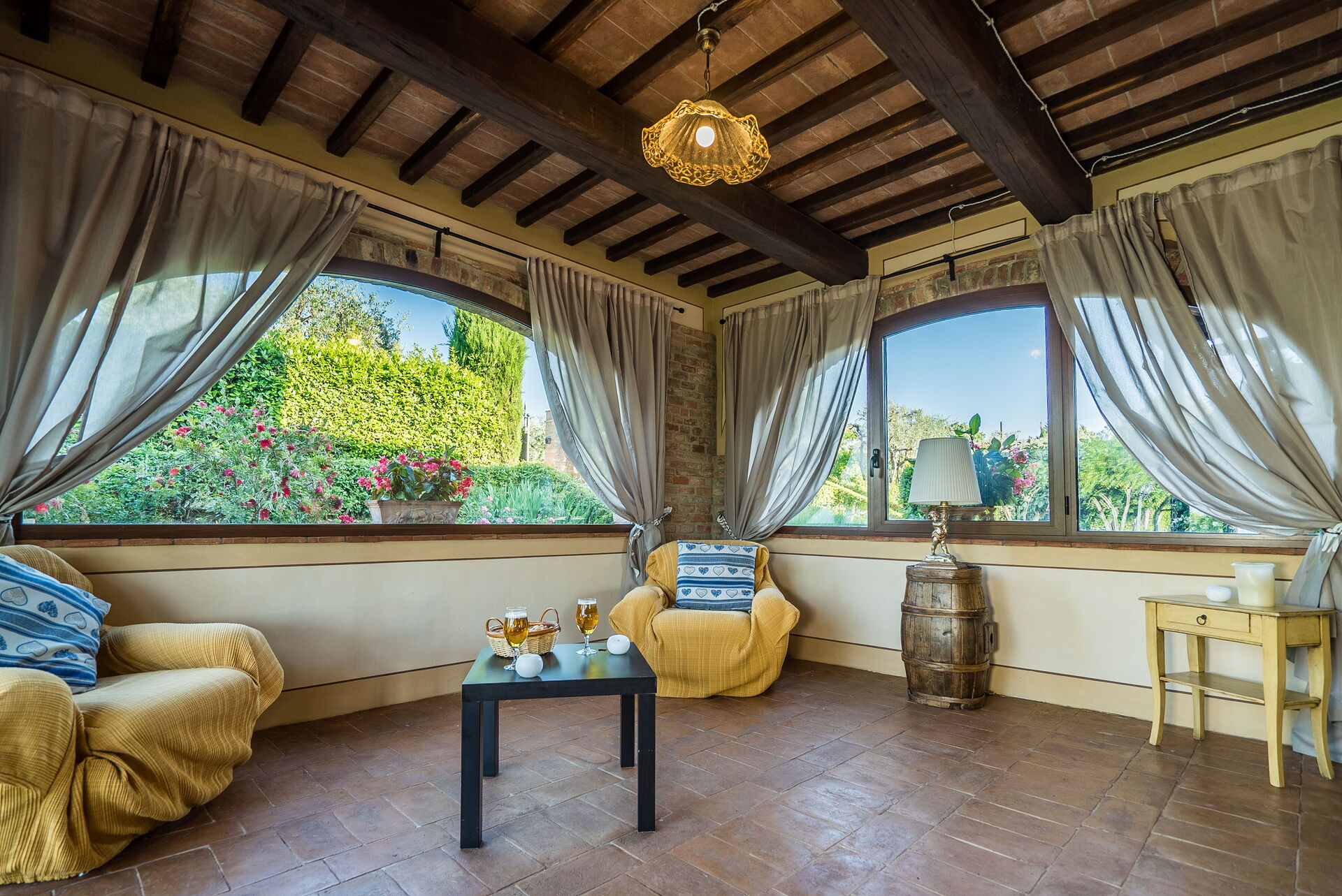 La résidence Villa i Colli est une jolie propriété (300 mètres carrés) qui offre piscine privée, bain à remous et air conditionné. La propriété peut loger comfortablement jusqu'à 14 personnes dans six chambres à coucher avec sept salles de bain. La propriété est idéalement située 2 km de Montaione, Italie et à seulement 19 km de San Gimignano. Si vous aimez jouer au golf pendant vos vacances, alors vous serez heureux de savoir qu'il y a un terrain de golf à proximité.