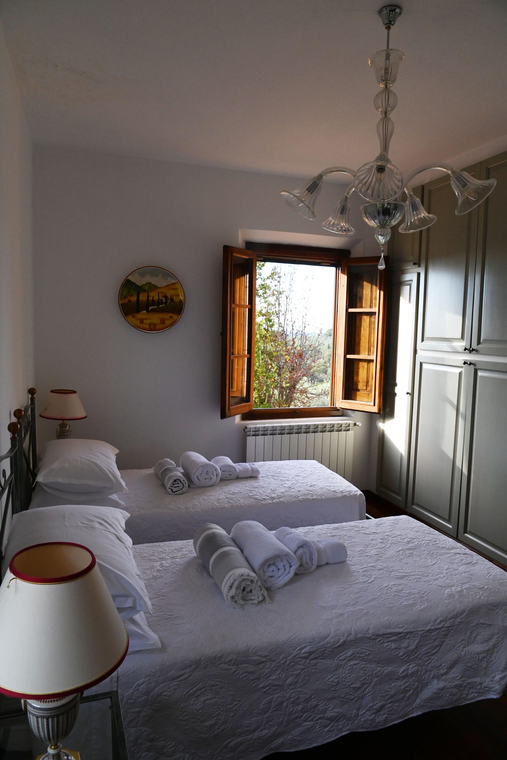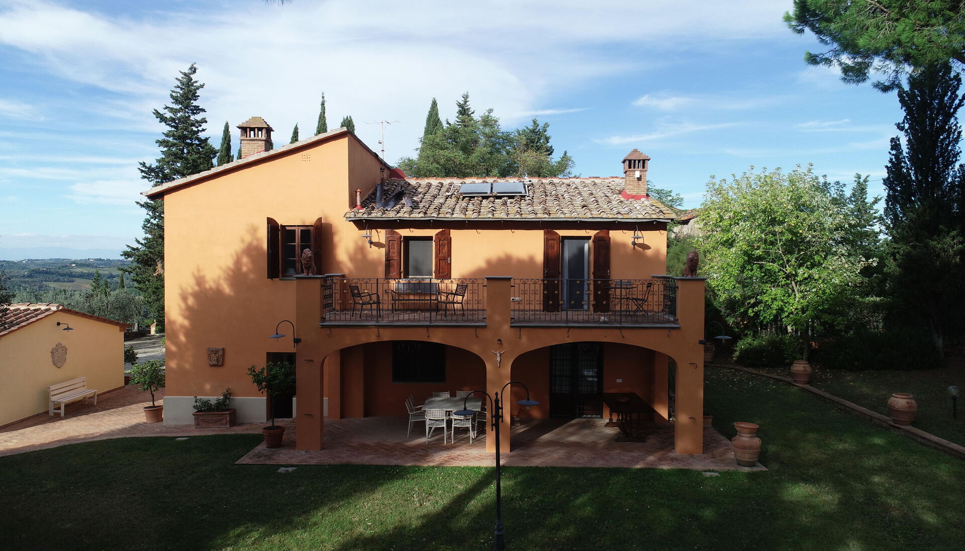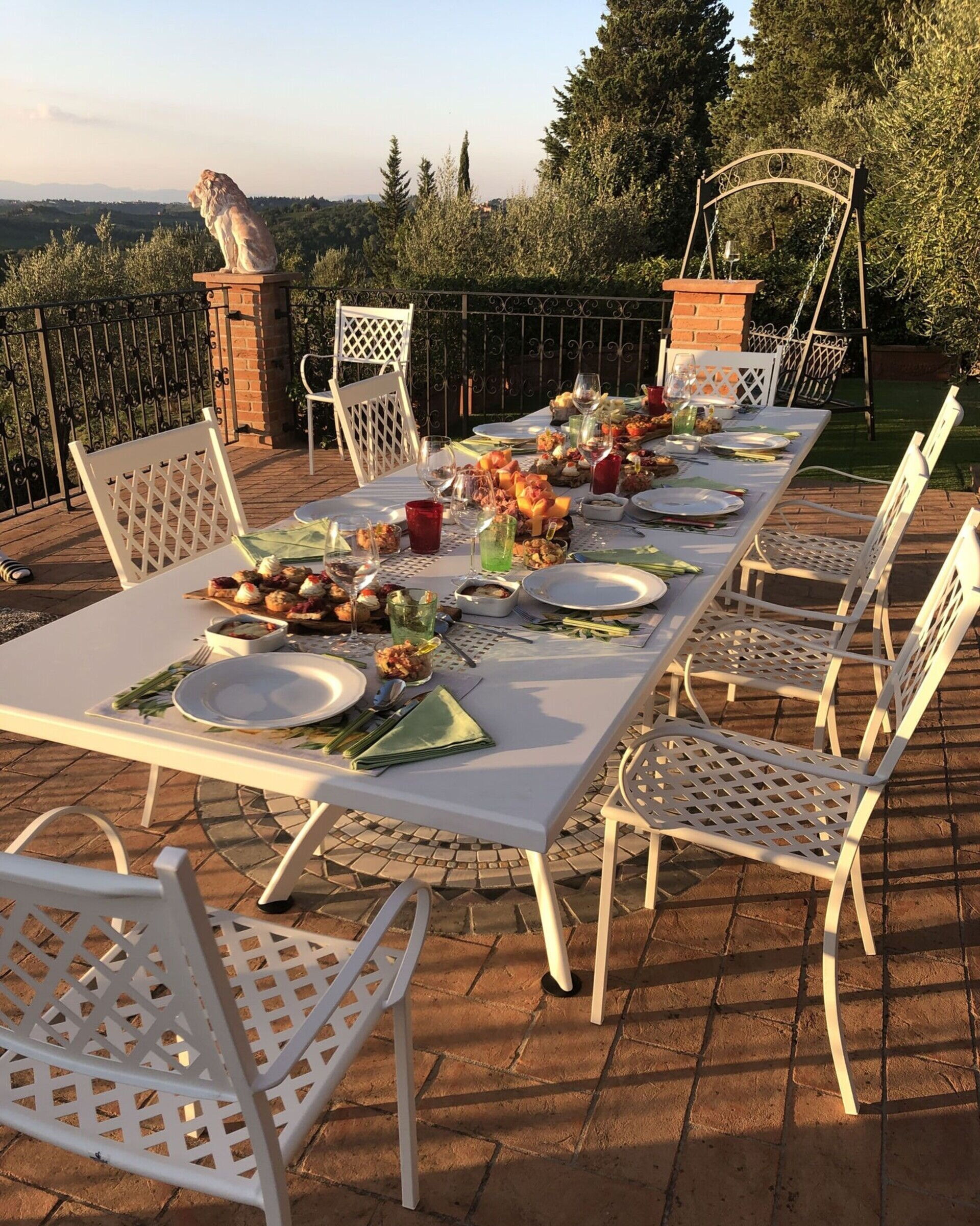 à votre arrivée vous serez accueillis par le propriétaire, ou une personne de sa confiance, et vous trouverez une jolie propriété, propre et bien entretenue, avec vue sur les collines parfaite pour des vacances relaxantes en Toscane. Pour votre plaisir vous trouverez une piscine privée où vous pouvez vous détendre tout en dégustant une bonne boisson fraîche après une mouvementée journée de visites de musées. Aussi disponibles en plein air sont une terrasse, bain à remous et terrain de jeu. Dîner avec les amis et la famille est une importante partie de la culture toscane. Profitez de la cuisine bien équipée pour préparer les repas avec des produits locaux pendant vos vacances. La cuisine comprend machine à café, four micro-onde, grille-pain et réfrigérateur, ainsi que, abondance de vaisselle et couverts pour un maximum de 12 personnes.