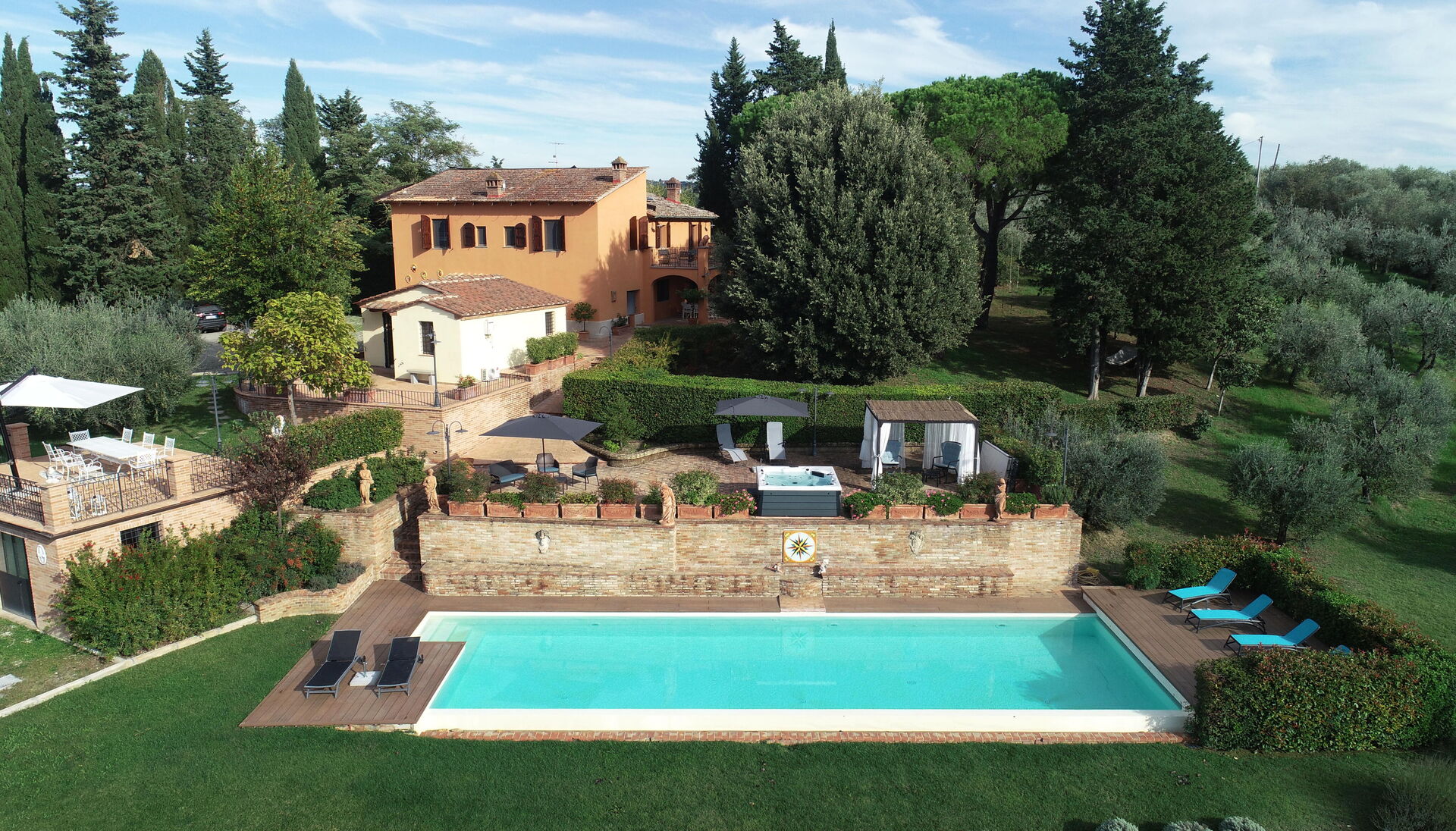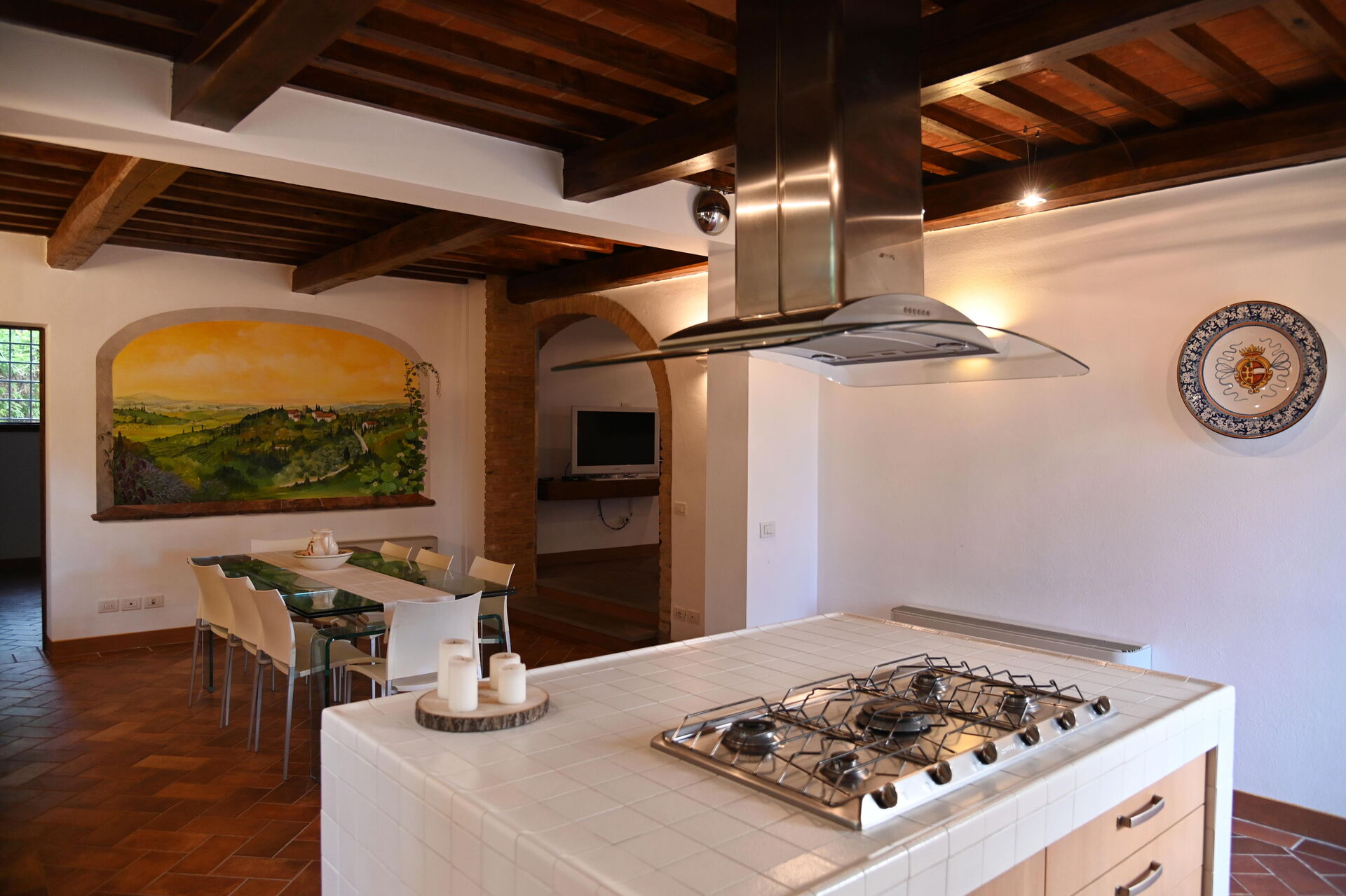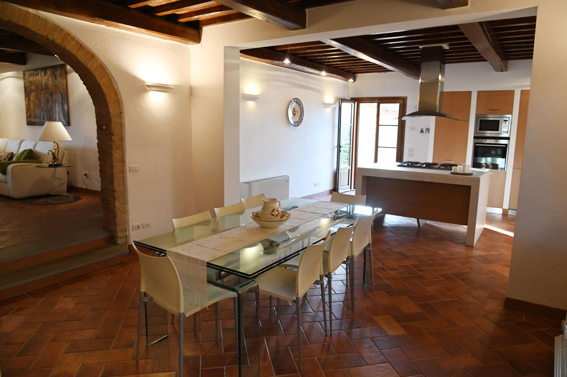 à votre arrivée vous serez accueillis par le propriétaire, ou une personne de sa confiance, et vous trouverez une jolie propriété, propre et bien entretenue, avec vue sur les collines parfaite pour des vacances relaxantes en Toscane. Pour votre plaisir vous trouverez une piscine privée où vous pouvez vous détendre tout en dégustant une bonne boisson fraîche après une mouvementée journée de visites de musées. Aussi disponibles en plein air sont une terrasse, bain à remous et terrain de jeu. Dîner avec les amis et la famille est une importante partie de la culture toscane. Profitez de la cuisine bien équipée pour préparer les repas avec des produits locaux pendant vos vacances. La cuisine comprend machine à café, four micro-onde, grille-pain et réfrigérateur, ainsi que, abondance de vaisselle et couverts pour un maximum de 12 personnes.