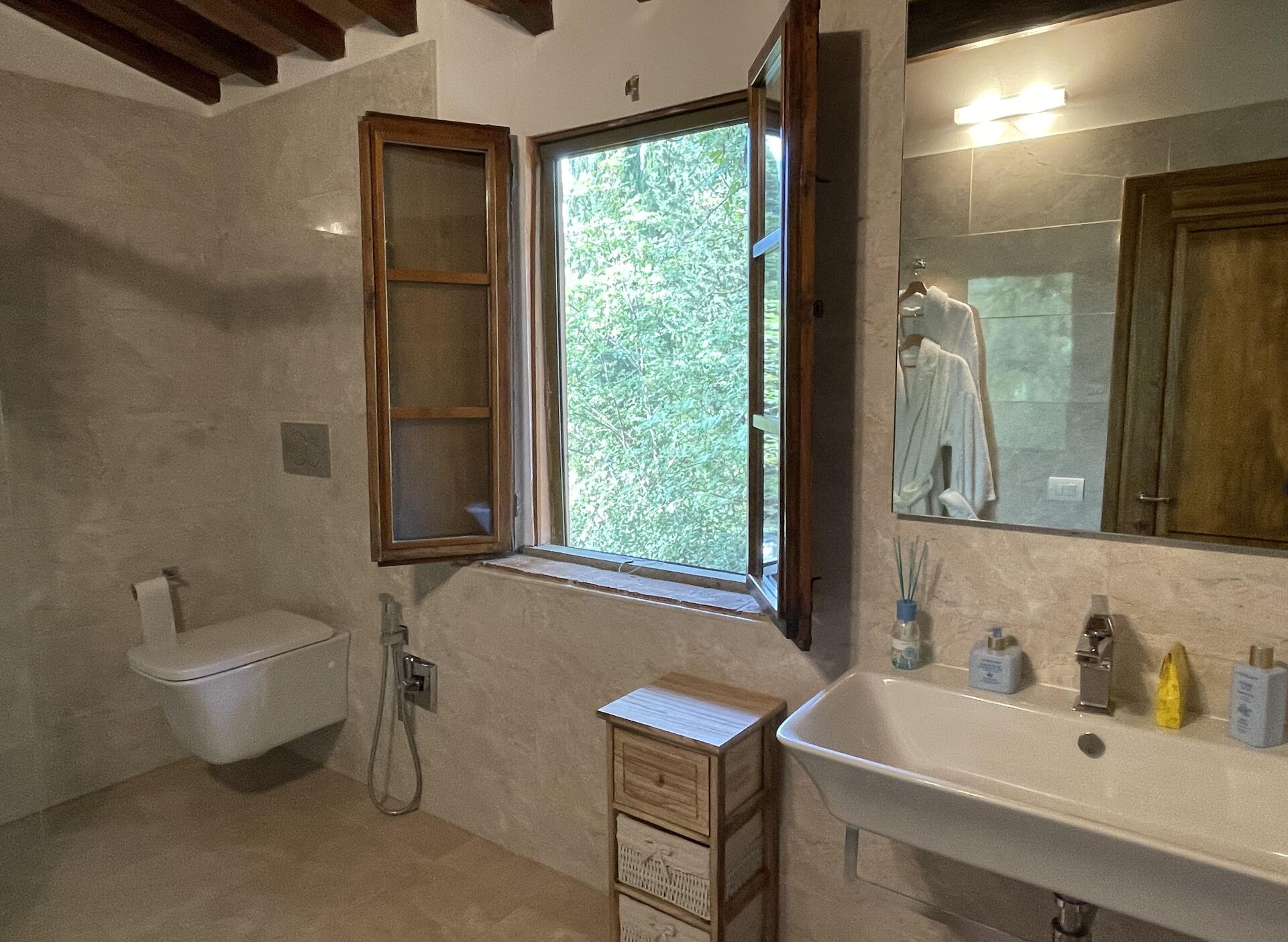 chambre avec salle de bain 2: lit double, internet WIFI, climatisation, moustiquaires, bassin, wc, bidet, douche.