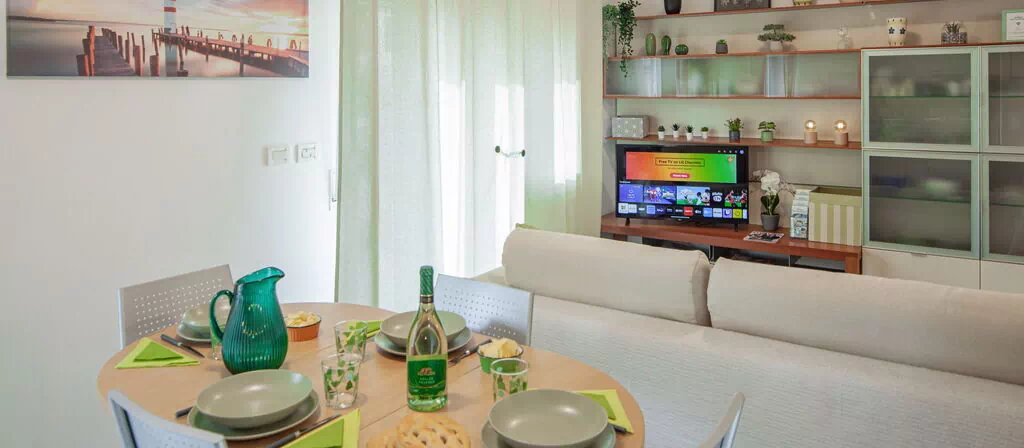 Wi-Fi rapide, Smart-TV 4K 43 pouces, chaînes de télévision par satellite : chaînes italiennes en HD (TivùSat) et les principales chaînes internationales gratuites (depuis le satellite Astra).