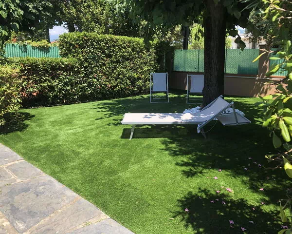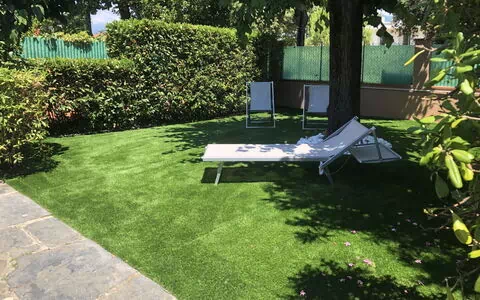 Le petit jardin privé, orné d'arbres matures, crée une atmosphère naturellement ombragée et paisible. Le patio est meublé de mobilier de jardin et offre un espace confortable pour les repas en plein air, les moments de convivialité ou simplement pour profiter de la douce brise côtière. L'ensemble du jardin et du patio constitue un espace extérieur polyvalent et accueillant, parfaitement adapté au climat méditerranéen de la côte de Forte dei Marmi.