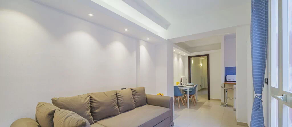 L'appartement Leonardo s'étend sur 37 mètres carrés répartis sur un seul niveau au rez-de-chaussée et accueille jusqu'à 3 personnes. Il comprend 1 chambre et 1 salle de bains. Le séjour et la salle à manger forment un espace ouvert meublé d'un canapé-lit de 140 centimètres, d'une table à manger et d'un téléviseur à écran plat. La chambre, de grande taille, est équipée d'un lit double et d'une climatisation. La kitchenette intégrée au séjour dispose de 4 plaques de cuisson, d'un four, d'un micro-ondes, d'un congélateur et d'une cafetière électrique, avec une table à manger dédiée. La salle de bains avec douche est équipée d'un bidet et d'un WC.