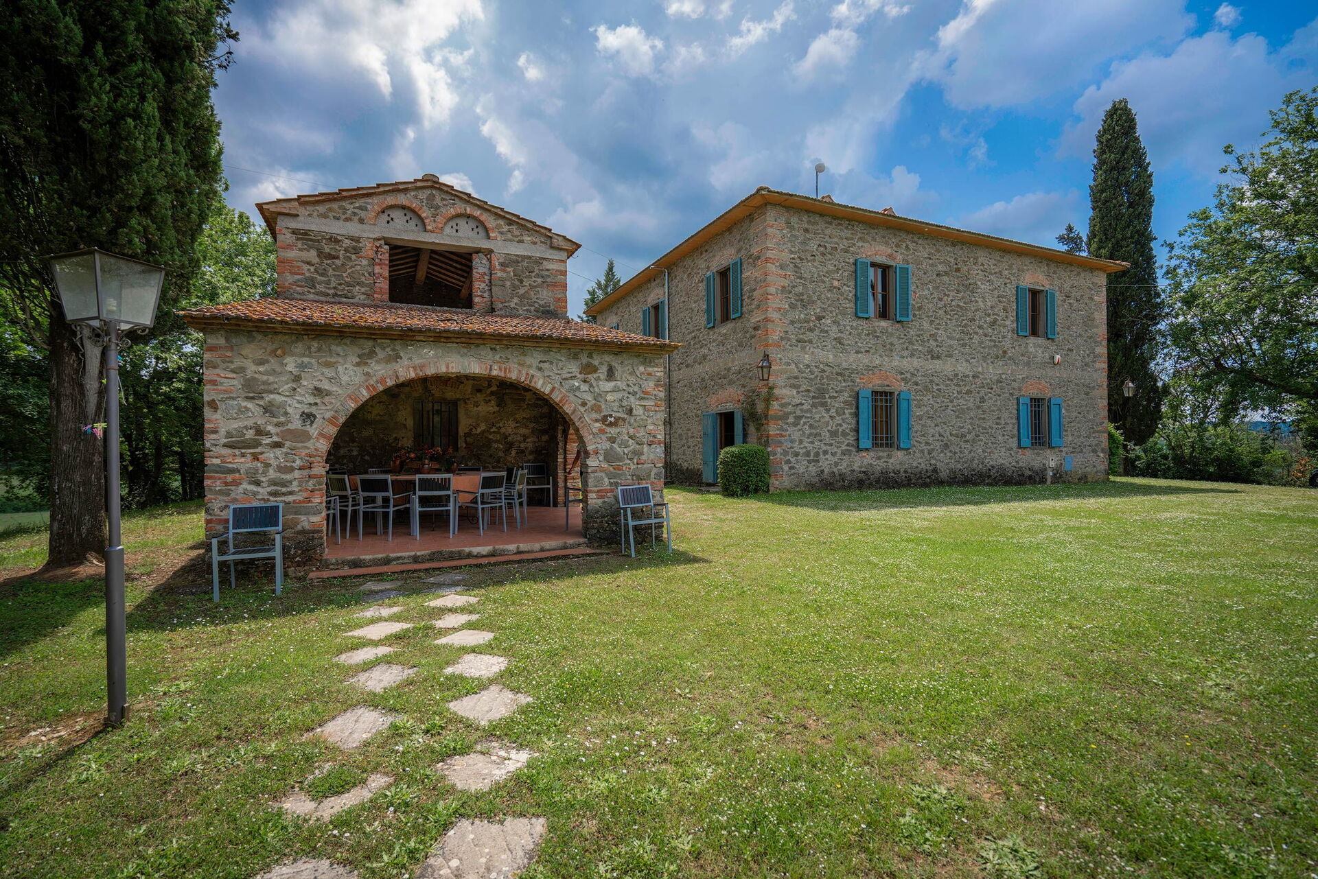 à votre arrivée vous serez accueillis par le propriétaire, ou une personne de sa confiance, et vous trouverez une jolie propriété, propre et bien entretenue, avec vue sur les collines idéale pour des vacances relaxantes en Toscane. Pour votre plaisir vous trouverez une piscine privée où vous pouvez vous détendre tout en dégustant une bonne boisson fraîche après une active journée de achats. Aussi disponibles en plein air sont un barbecue, une terrasse et aire de jeu. Si vous aimez cuisiner pour la famille et les amis il y a une cuisine bien equipée y compris machine à café, grille-pain, cuisinière et réfrigérateur, ainsi que, assez de vaisselle et couverts jusqu'à 18 personnes.