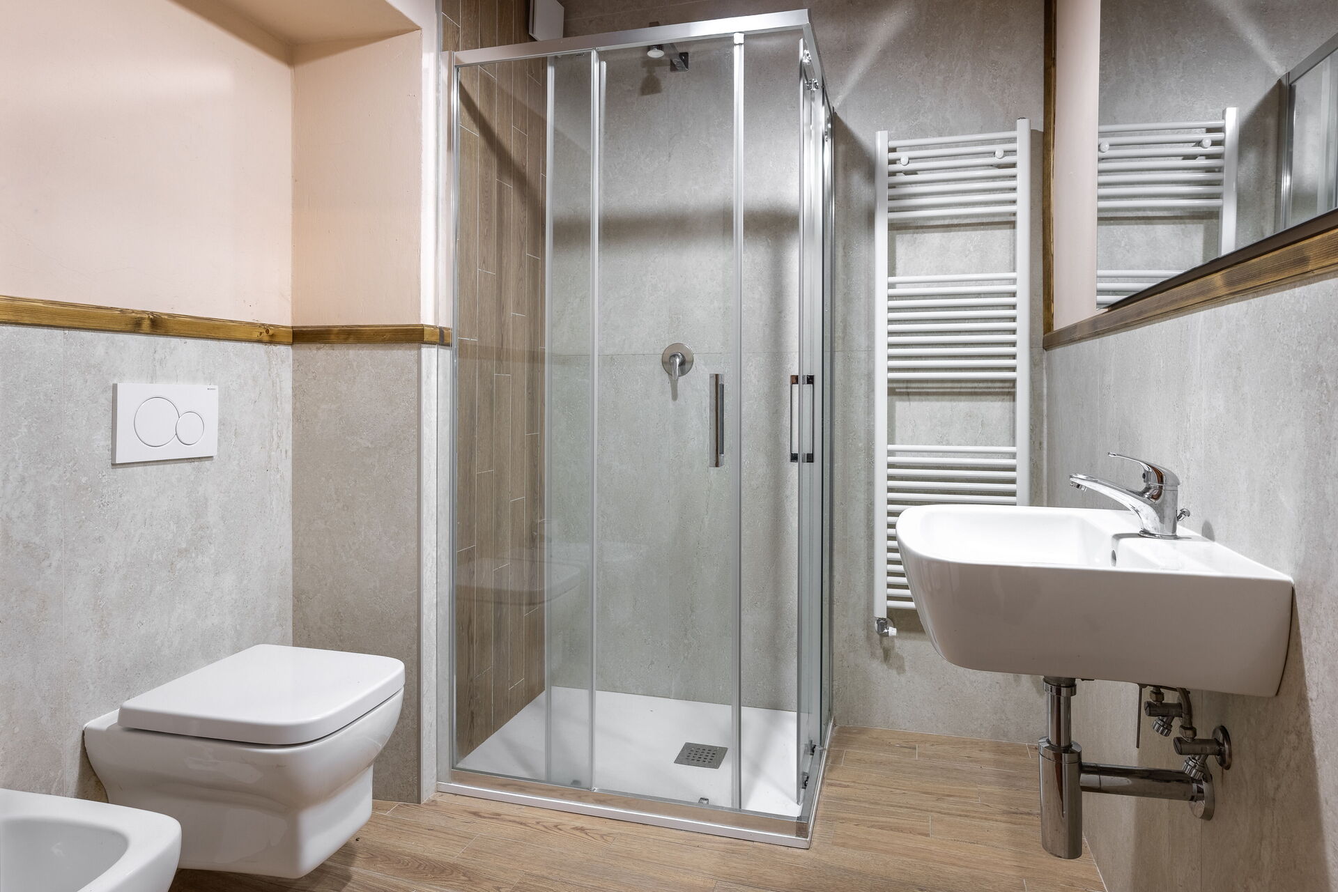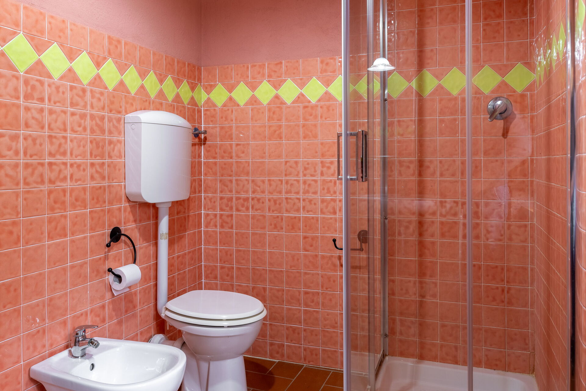 chambre avec salle de bain 2: trois lits à une place, internet WIFI, bassin, wc, bidet, douche.