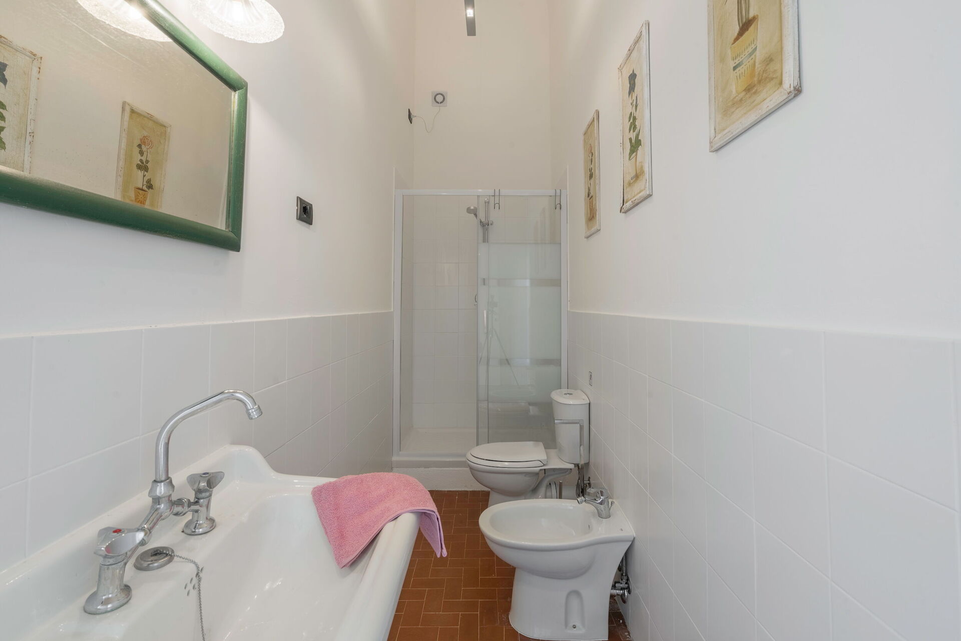 salle de bain: bassin, wc, bidet, bagnoire.