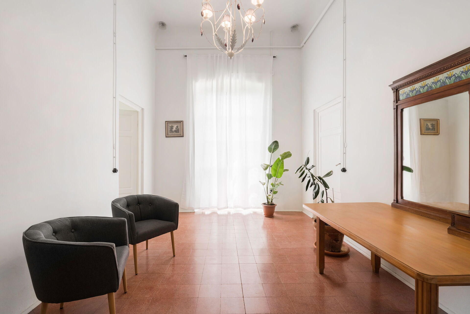 Salon: deux fauteuils, bureau, internet WIFI, climatisation, sortie sur le balcon.