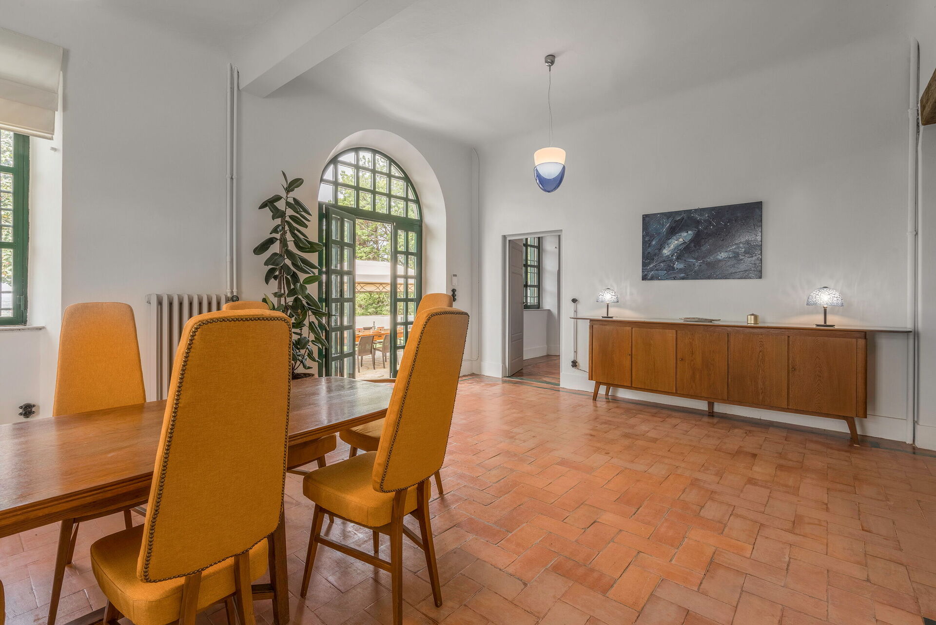 salle à manger: table à manger, internet WIFI, sortie sur le jardin.