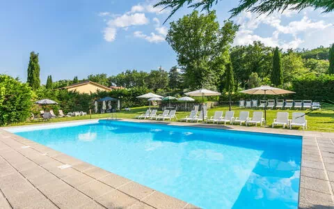 La piscine clôturée mesure 15 x 7 mètres avec une profondeur comprise entre 120 et 150 cm ; elle est disponible du 15 mai au 15 septembre et est entretenue régulièrement par le propriétaire et le jardinier. Une douche extérieure est aménagée à proximité pour l'usage avant et après la baignade. Les jardins naturels et sauvages, ainsi que la prairie ouverte, créent un cadre tranquille où les hôtes peuvent profiter du paysage toscan. Du mobilier de jardin est disposé dans les espaces extérieurs, offrant des zones confortables pour se détendre, diner et se socialiser en plein air. Un barbecue est à disposition pour la cuisine en extérieur. Les enfants disposent d'une aire de jeux dédiée avec un toboggan et une balançoire, ainsi que d'un accès au tennis de table. Des sentiers de promenade commencent à 100 mètres de la maison, invitant les hôtes à explorer la campagne environnante à pied.