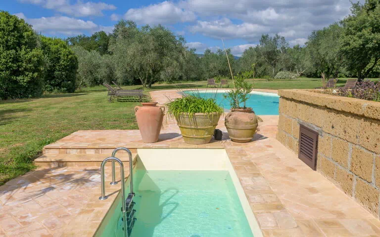 Grande maison rustique, individuelle "Il Piccione", de 3 étages, du 14ème siècle, environnée par les arbres et prés. À 1.5 km du centre de Sorano, à 9 km du centre de Pitigliano, situation isolée, tranquille, à 50 m de la forêt, à 60 km de la mer, dans la verdure. A usage privé: terrain 12'000 m2 avec pelouse et arbres, jardin propice à la détente, piscine (18 x 8 m, profondeur 120 cm, disponibilité saisonnière: 01.Jun. - 15.Oct.). Douche extérieure, pergola, meubles de jardin, barbecue. Infrastructures de la Maison: lave-linge (en sus). Accès en voiture par un chemin de 200 m de long (chemin non goudronné). Place de parking sur le terrain. Magasins 1.5 km, magasin d'alimentation 1.5 km, supermarché 9 km, restaurant 1.9 km, bar 1.7 km, plage de sable "Albinia" 65 km, centre thermal "Terme di Sorano" 440 m, baignade en lac "Bolsena" 25 km. Terrain de golf (18 trous) 30 km, centre équestre 6 km, chemins de randonnées pédestres depuis la maison 1 km. Attractions à proximité: Sovana 11 km, Saturnia 34 km, Orvieto 49 km, Viterbo 54 km, Val d´Orcia 40 km. Les lacs connus sont facilement accessibles: Bolsena 25 km. Région de randonnées: Mountain-bike 1.5 km. Veuillez noter: voiture recommandée.