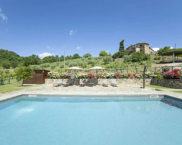 Maison de campagne rustique, confortable, individuelle "La Dama", 700 m au dessus du niveau de la mer, environnée par les arbres et champs. À 20 km du centre de Cortona, situation isolée, à 35 km du lac. A usage privé: jardin 1'400 m2, piscine (5 x 10 m, profondeur 120 - 150 cm, disponibilité saisonnière: 01.Mai. - 15.Oct.). Douche extérieure, jardinet, meubles de jardin, barbecue, espace de jeux pour les enfants. Accès en voiture (1.6 km chemin non goudronné). Place de parking (couvert) sur le terrain. Supermarché 18 km, restaurant 2 km, gare ferroviaire "Camucia" 25 km, baignade en lac "Trasimeno" 35 km. Attractions à proximité: Castiglion Fiorentino 30 km, Tuoro Sul Trasimeno 36 km, Arezzo 50 km, Gubbio 50 km. Veuillez noter: voiture recommandée. Le propriétaire n'accepte pas les groupes de jeunes. L'eau du robinet n'est pas potable.