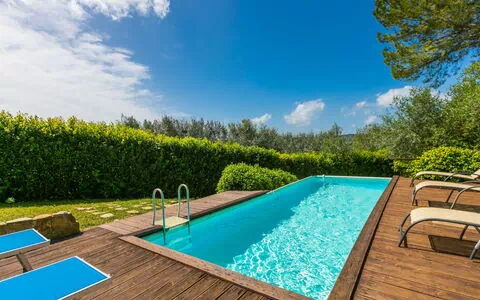 " Sole", ancienne ferme 6 pièces 195 m2 sur 3 niveaux. Spacieux, complètement rénovée en 2019, aménagement de bon goût et plaisant: séjour ouvert avec cheminée et TV (écran plat). Sortie sur la terrasse. Salle à manger. Cuisine (four, lave-vaisselle, Poêle à gaz, 5 feux, grille-pain, bouilloire électrique, micro-ondes, cafetière électrique). À l'étage inférieur: 1 chambre double. Sortie sur le jardin. Douche/WC. À l'étage supérieur: 2 chambres doubles, chaque chambre avec: air-conditionné. 1 chambre double avec 1 lit (140 cm), air-conditionné. Douche/bidet/WC, bain/douche/bidet/WC. Chauffage (en sus), air-conditionné. Sol en pierres naturelles. Terrasse, grande terrasse couverte, jardinet. Meubles de terrasse, barbecue, chaises longues, loggia, réduit. Très belle vue panoramique sur les alentours. A disposition: lave-linge, fer à repasser, moustiquaire, chaise haute pour enfant, lit bébé jusqu'à 2 ans, sèche-cheveux. Internet (Connexion WIFI, gratuit). Place de parking (cloturée) près de la maison. Veuillez noter: logement non-fumeur. Entrée privée. La piscine mentionnée dans le descriptif est privative. IT048038C24Q4Q8KAO