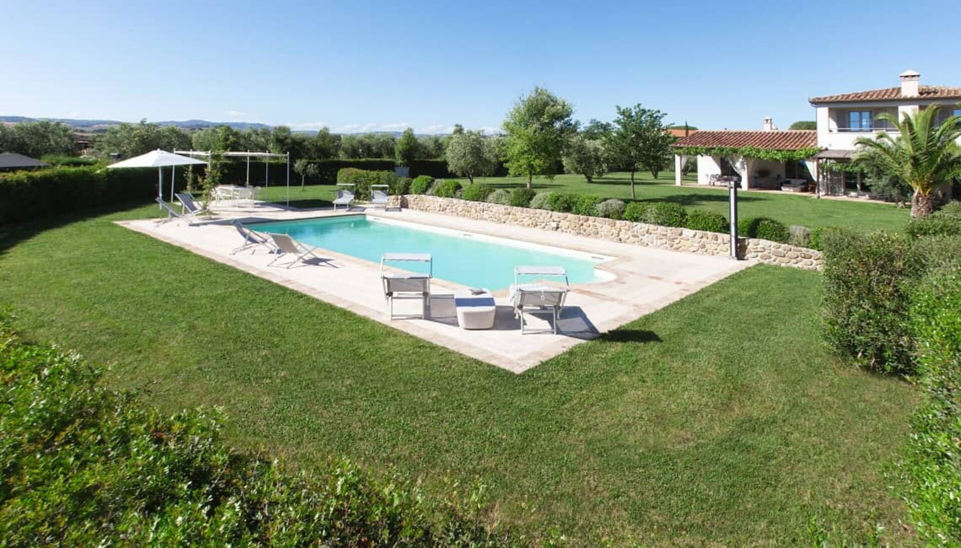 The holiday Villa in Maremma, Tuscany, is surrounded by a wide olive grove, cypresses and a lush garden. A wonderful private pool (11x5m, 1,40 deep) and a nice pergola are highlights of this villa.