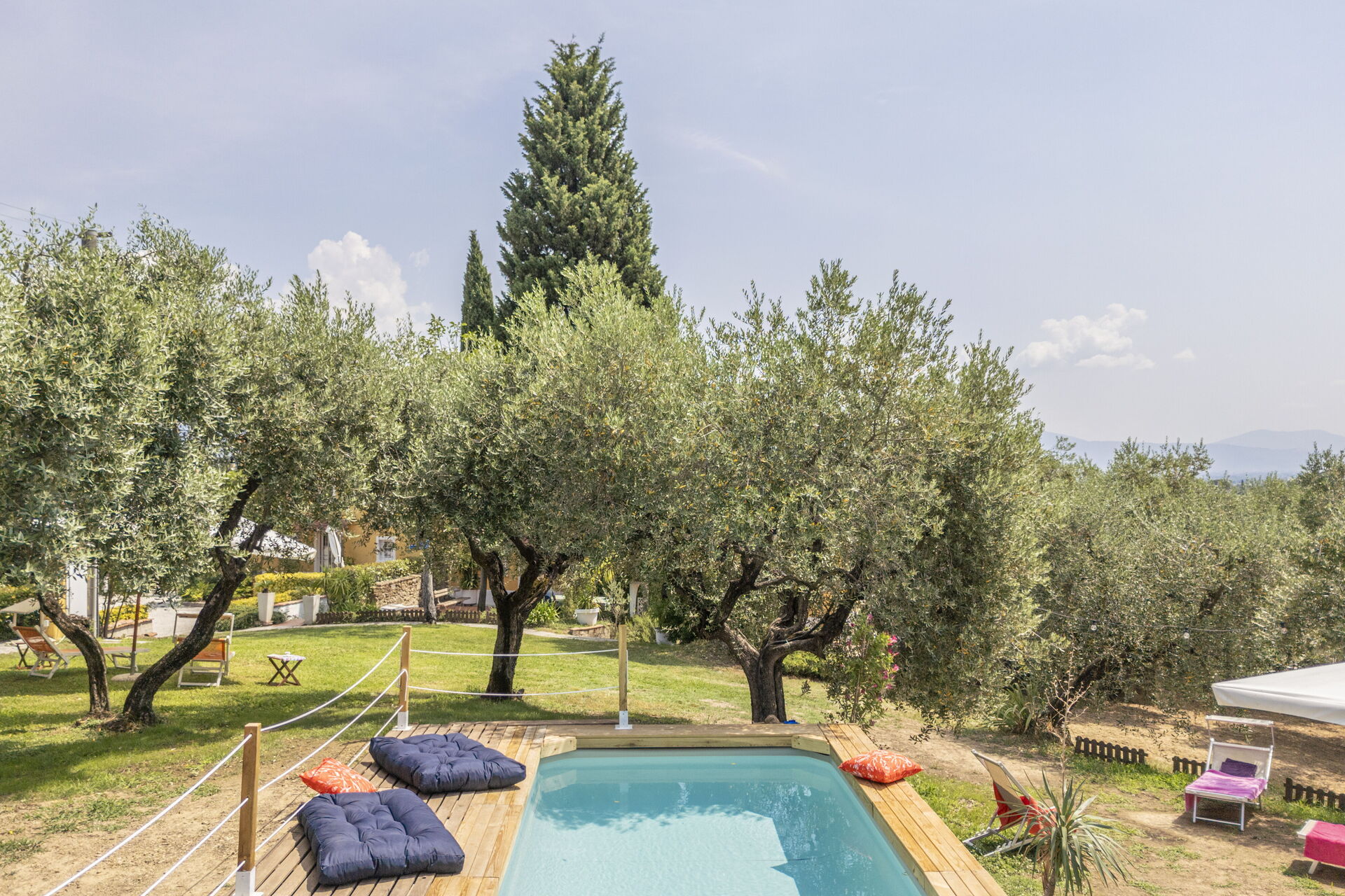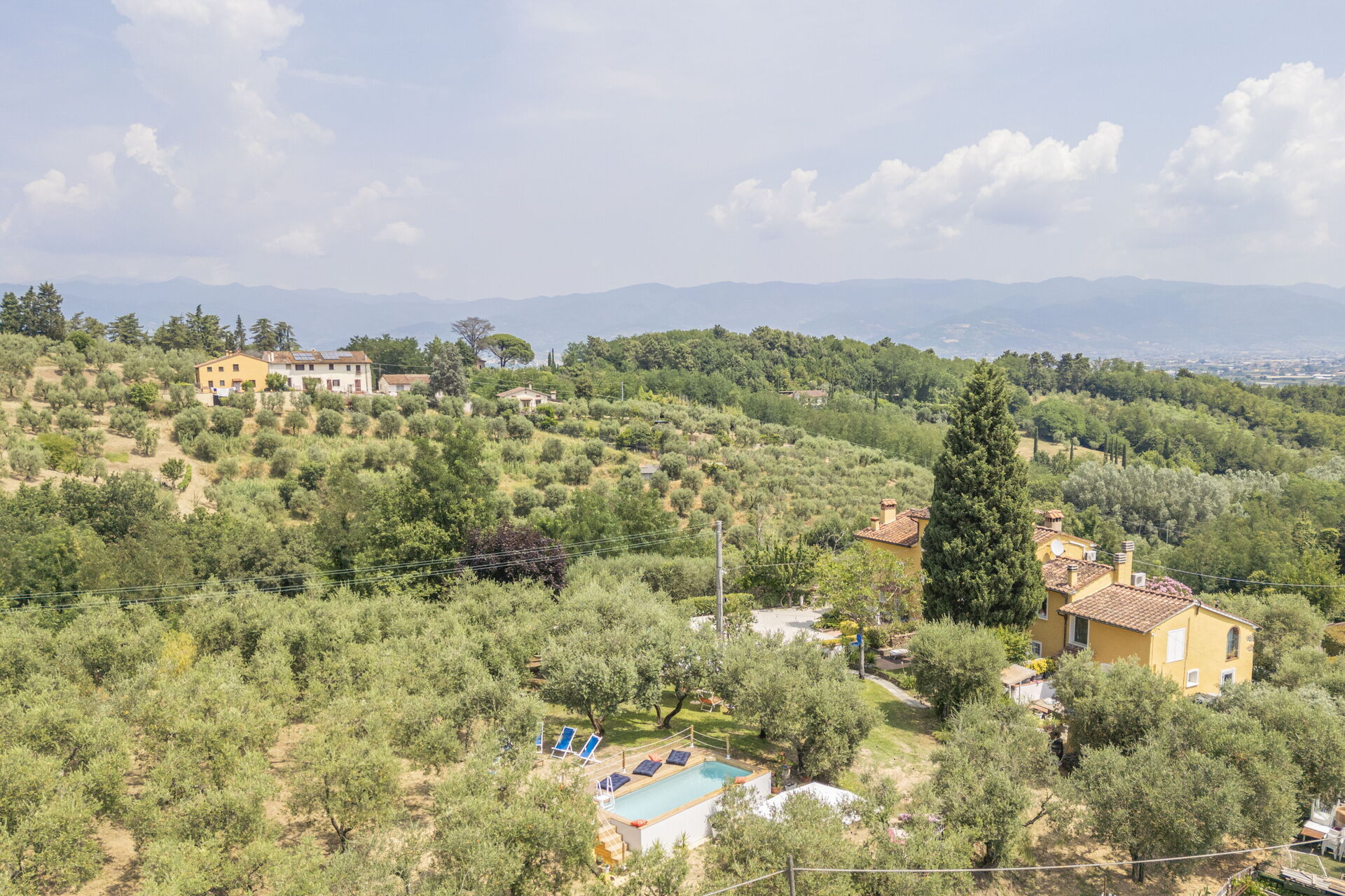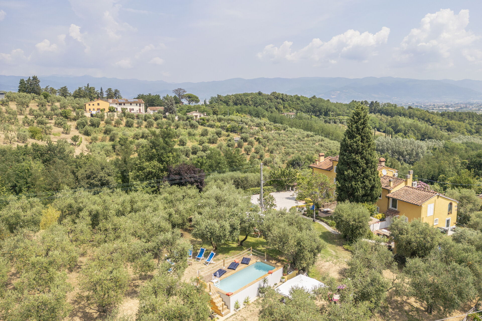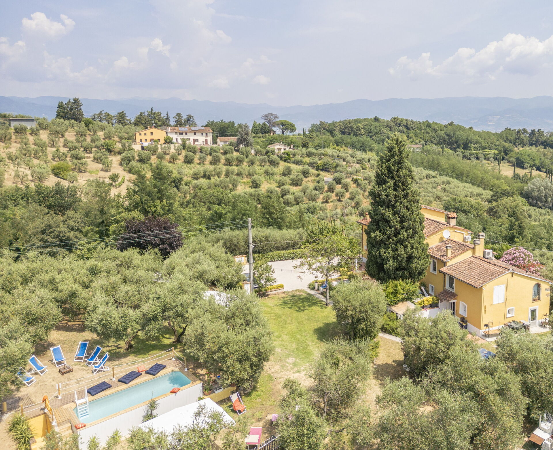 La plupart des gens aiment visiter les villes et les villages tout près pendant les vacances, donc pour votre référence vous trouvez ici est une liste des lieux populaires avec les distances (à vol d’oiseau) en voiture depuis la propriété:Florence 42 km, Lucques 52 km, San Gimignano 64 km, Greve In Chianti 69 km et Viareggio 73 km.