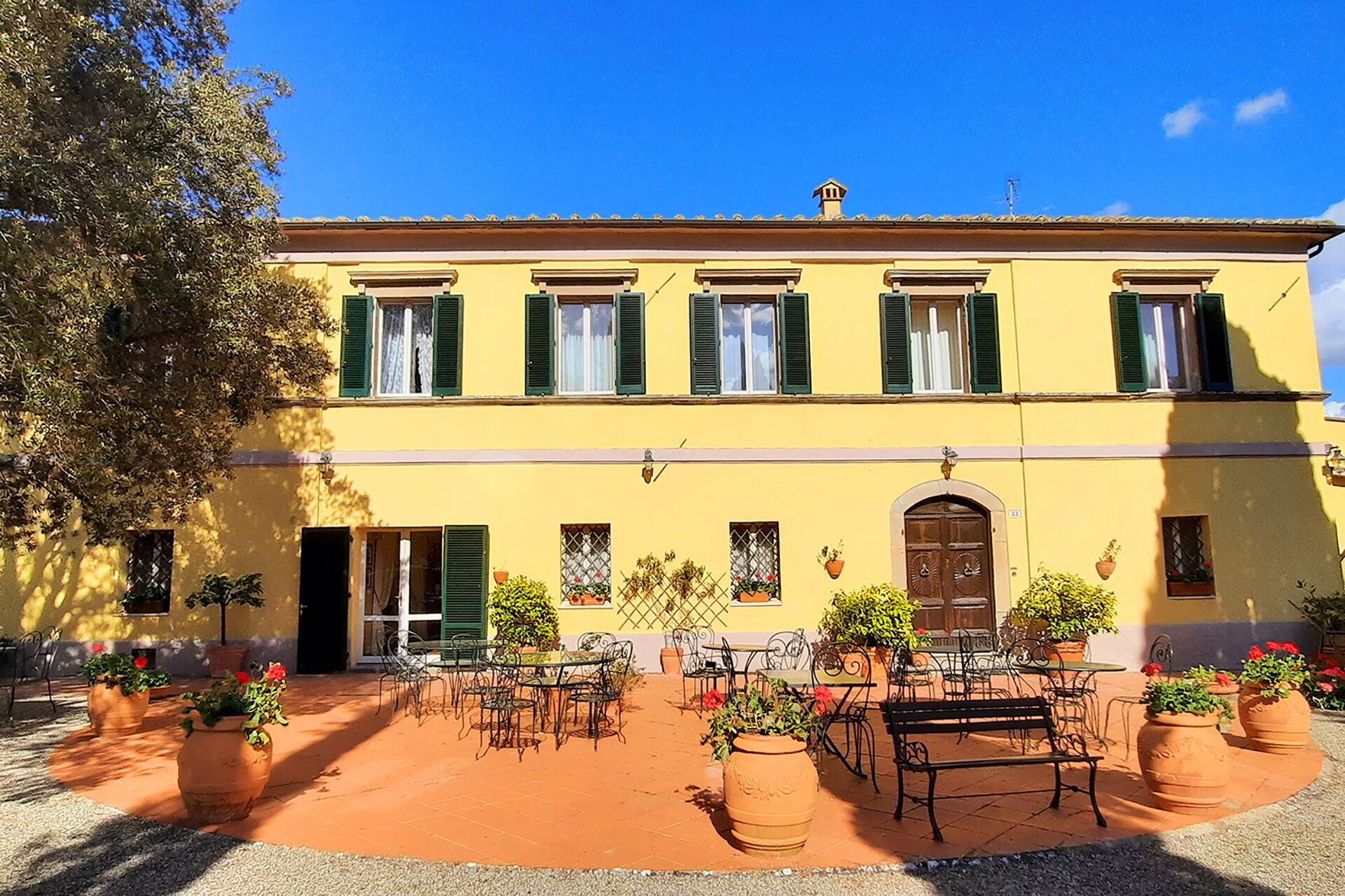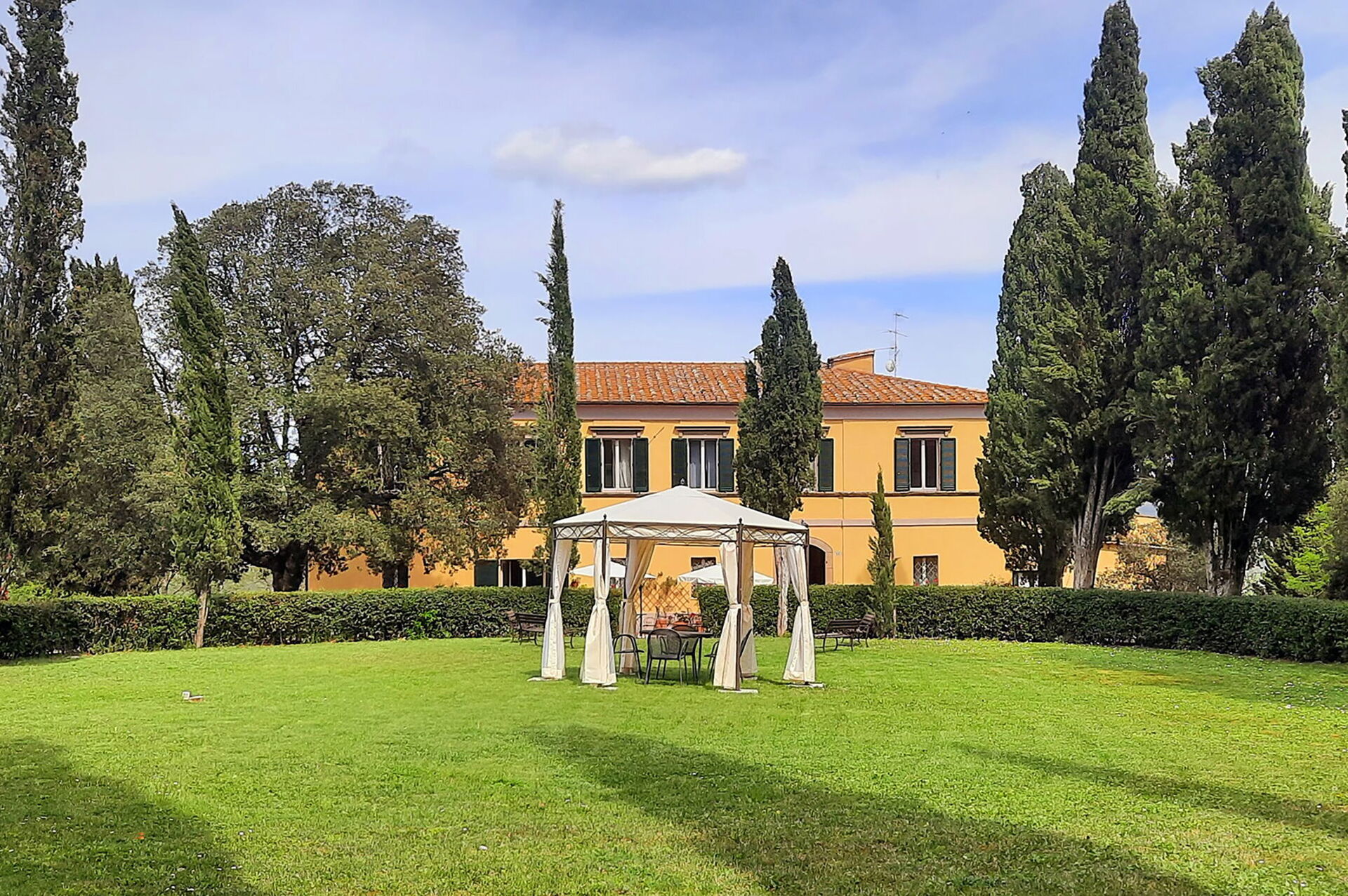 Elegant villa, in Florentine style, in the heart of the Val d'Orcia, built in the second half of the 18th century on a previous high medieval village linked to the route of the Via Francigena. Surrounded by a park of holm oaks and cypresses and placed on a hill in an extraordinarily panoramic position, the Palazzina is today a refined residence, conceived and furnished as a private villa where you can breathe the history and the grace of the past, open to guests and friends. Made even more elegant by a large circular garden at the entrance and ideal for events, an ancient hunting lodge, the villa preserves intact the features of the eighteenth-century farm created for banquets and ceremonies linked to the arrival of spring and the fertility of the earth.