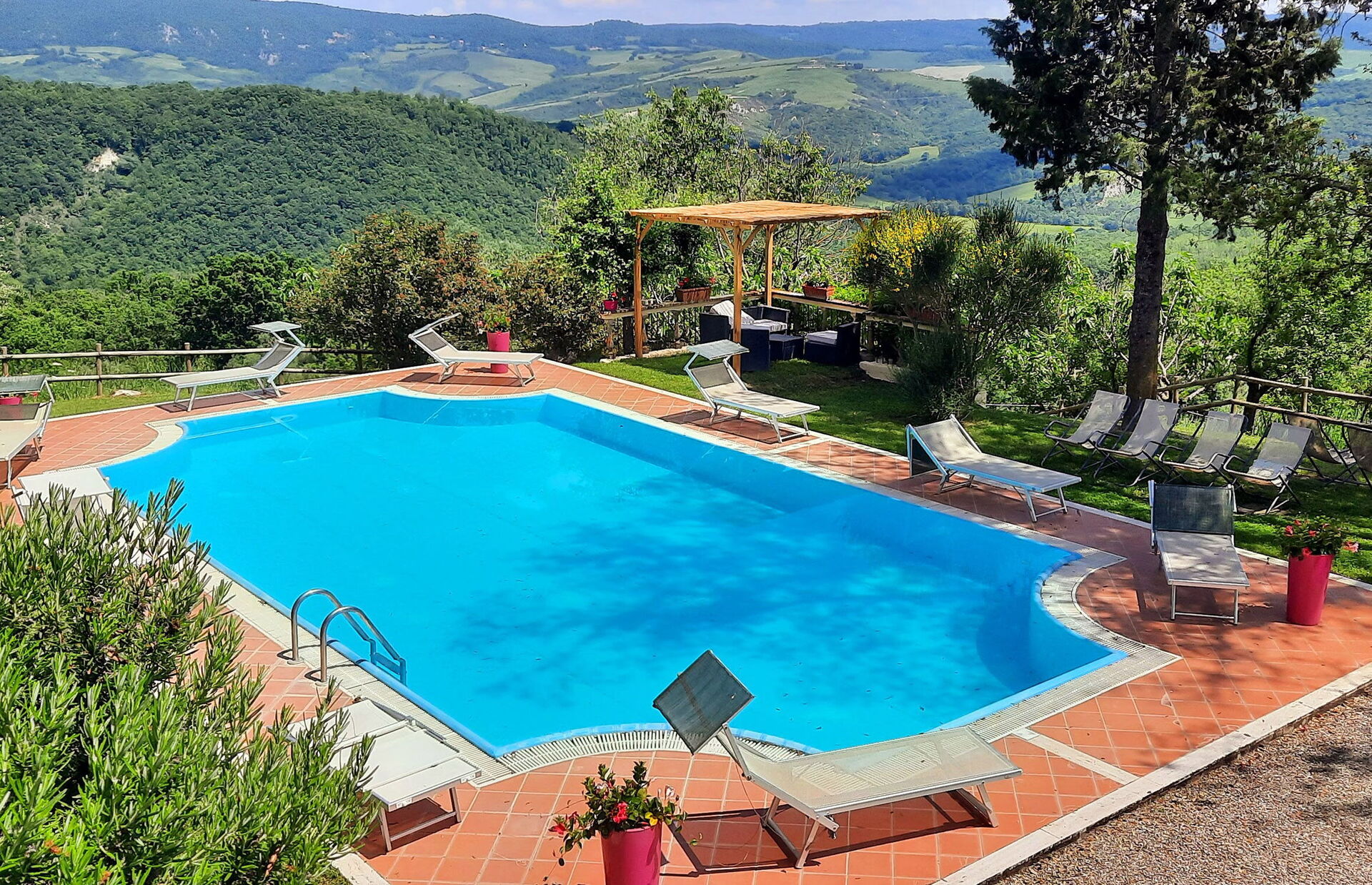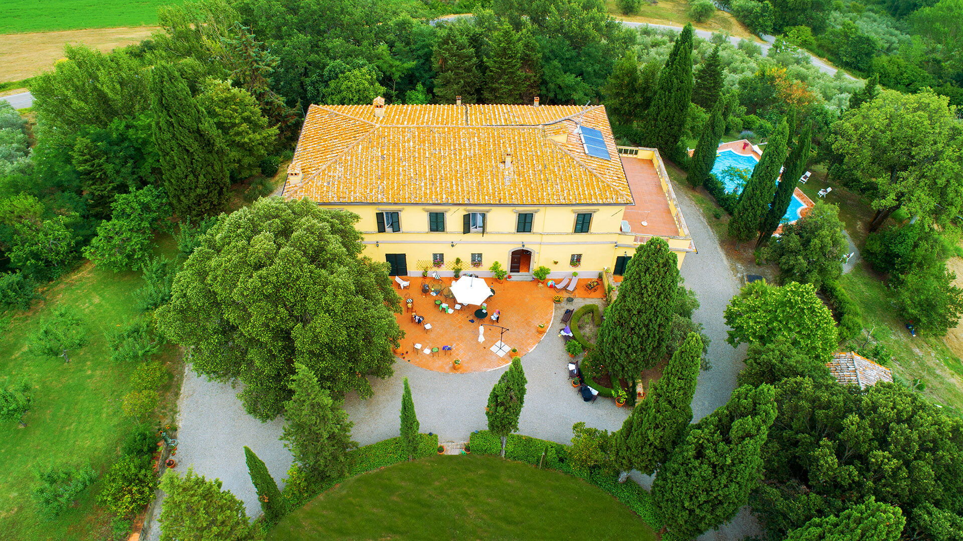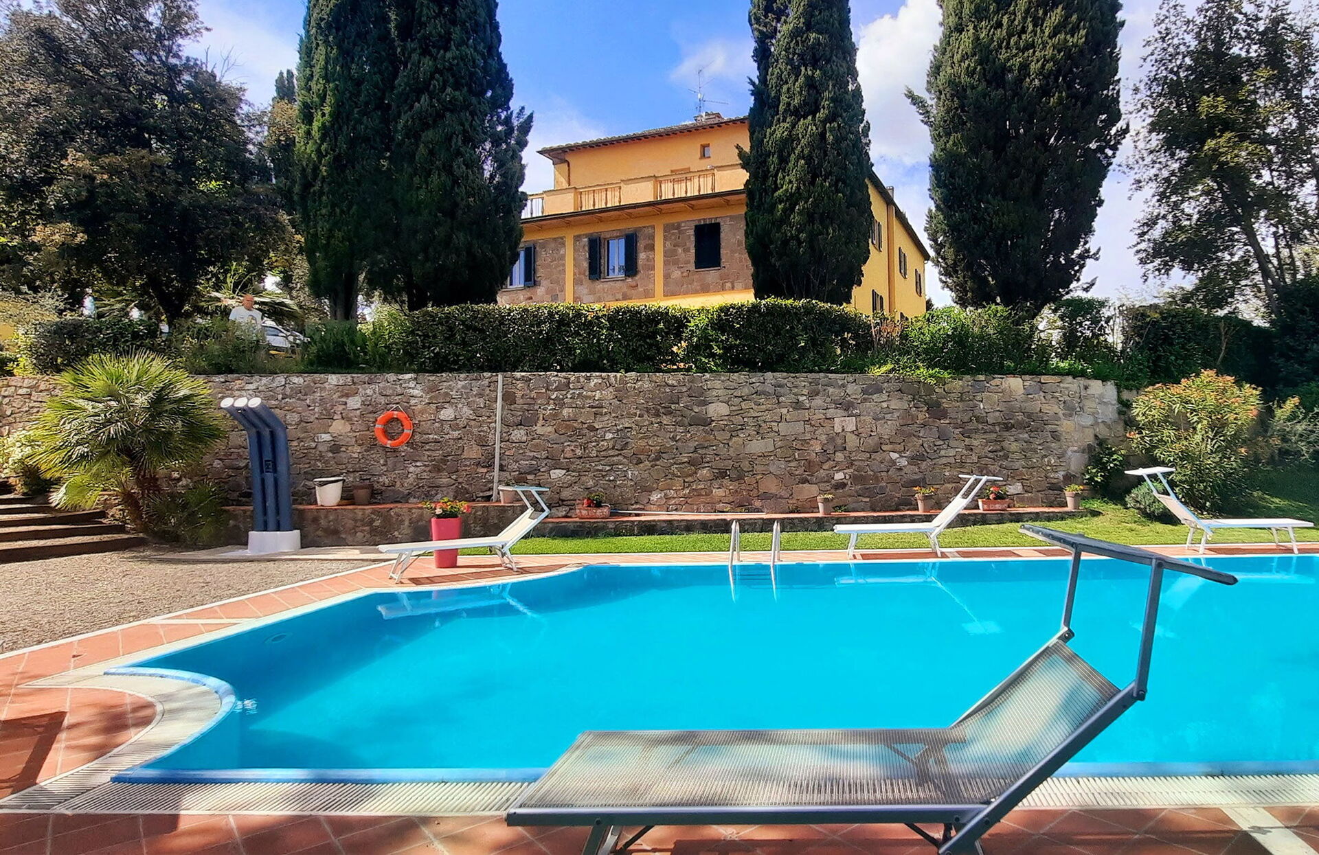 The historic park is enriched by a beautiful infinity pool (6x12m), a barbecue area with gazebo, whirpool bath next to the pool, outdoor area with games and volleyball court. There is an excellent Wi-Fi connection, both inside and outside the building, including the pool area. The villa is equipped with a safe, private parking, a large park with holm oaks and cypresses.