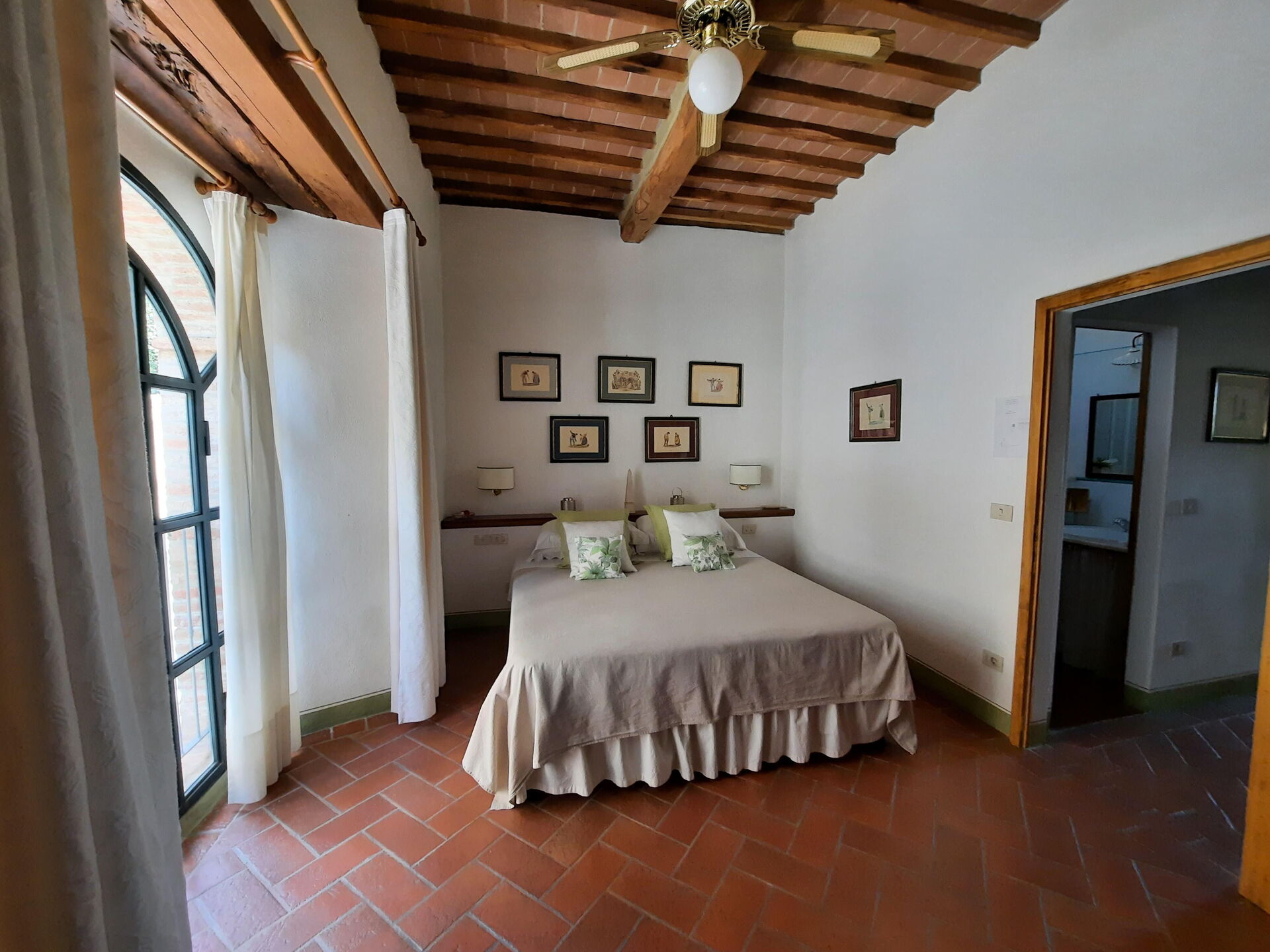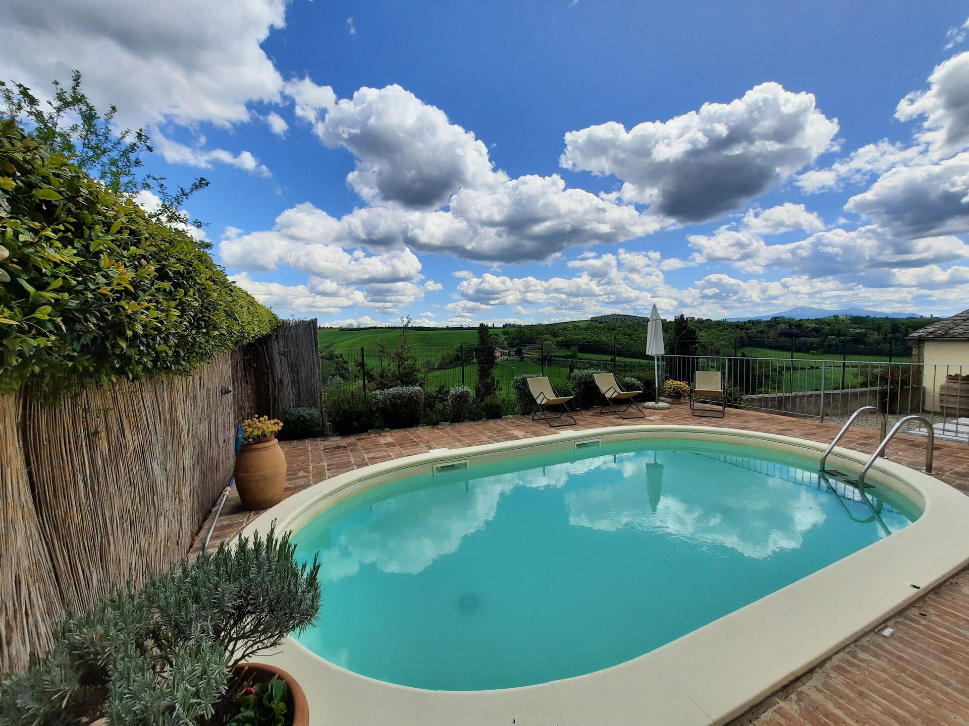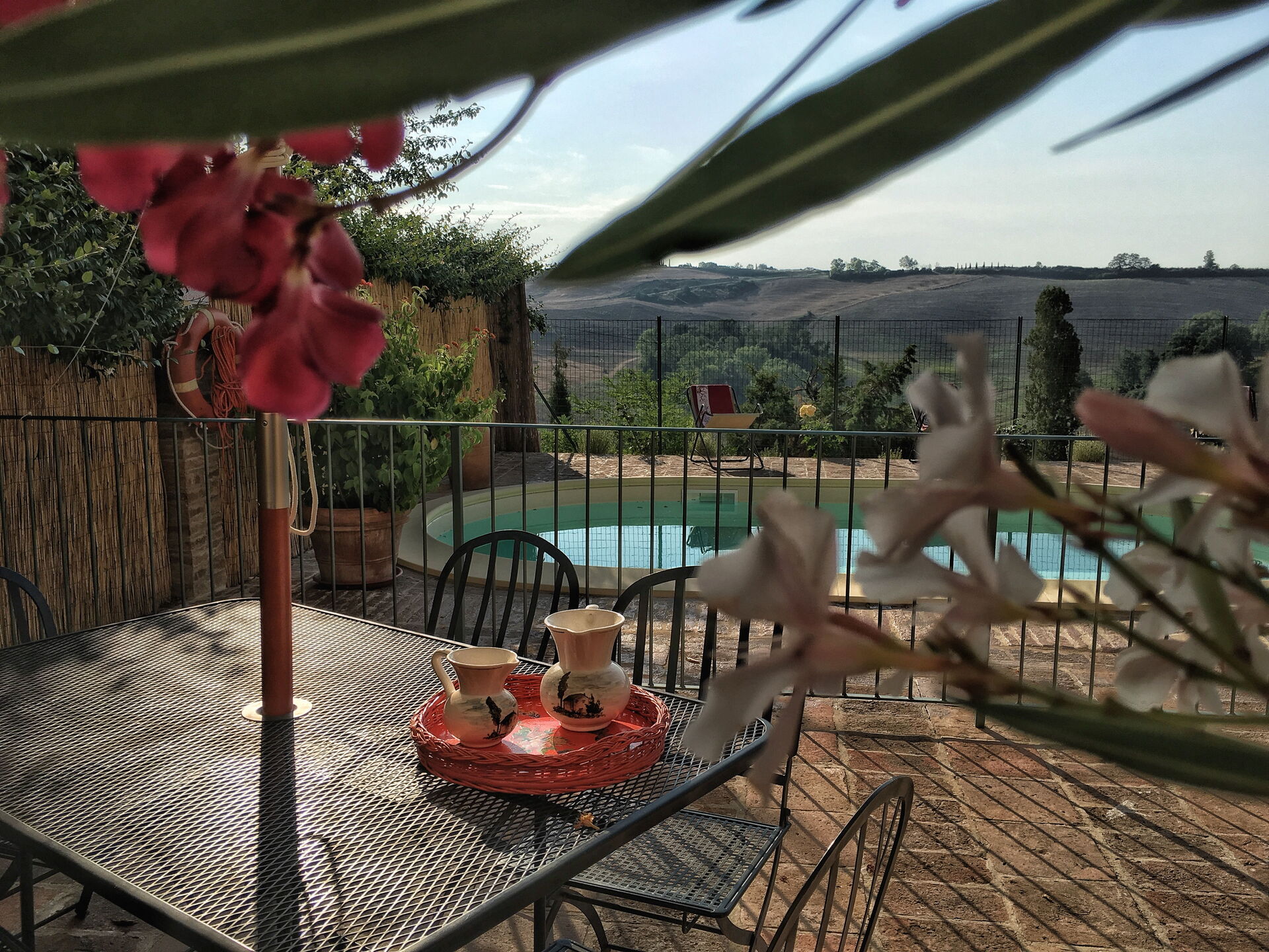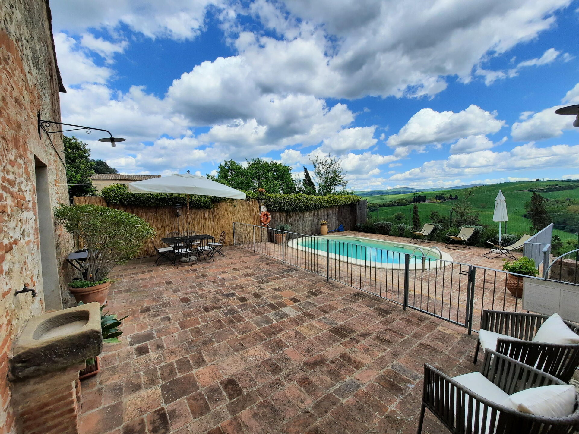 à l'arrivée à Casa Le Crete vous trouverez une jolie propriété, propre et bien entretenue, avec vue sur les collines parfaite pour des tranquilles vacances en Toscane. Peu importe comment vous passez vos journées... shopping, visites de musées, visites ou tout simplement en vous baladant à la campagne, quand vous arrivez à la maison, vous pouvez vous délasser à la piscine avec votre famille et vos amis et conclure au mieux un autre jour de vacances en Toscane. Pour votre plaisir, sur le terrain il y a une véranda et un barbecue. Si vous aimez cuisiner pour la famille et les amis il y a une cuisine bien equipée y compris machine à café, grille-pain, cuisinière et réfrigérateur, ainsi que, assez de vaisselle et couverts jusqu'à cinq personnes. Si vous préférez dîner «al fresco», il y a à votre disposition un patio entièrement meublé où vous pourrez profiter du beau temps tout en mangeant en plein air.