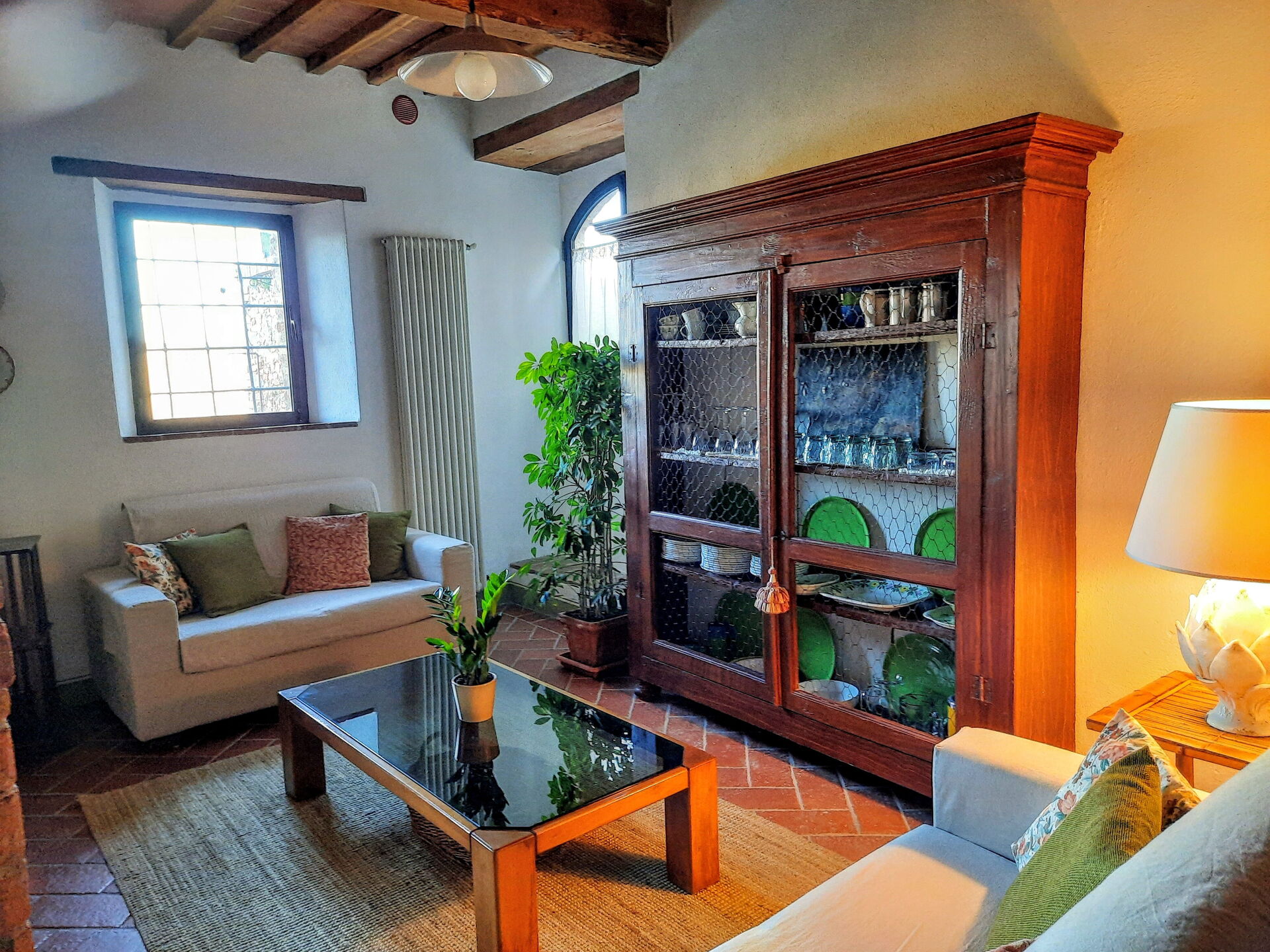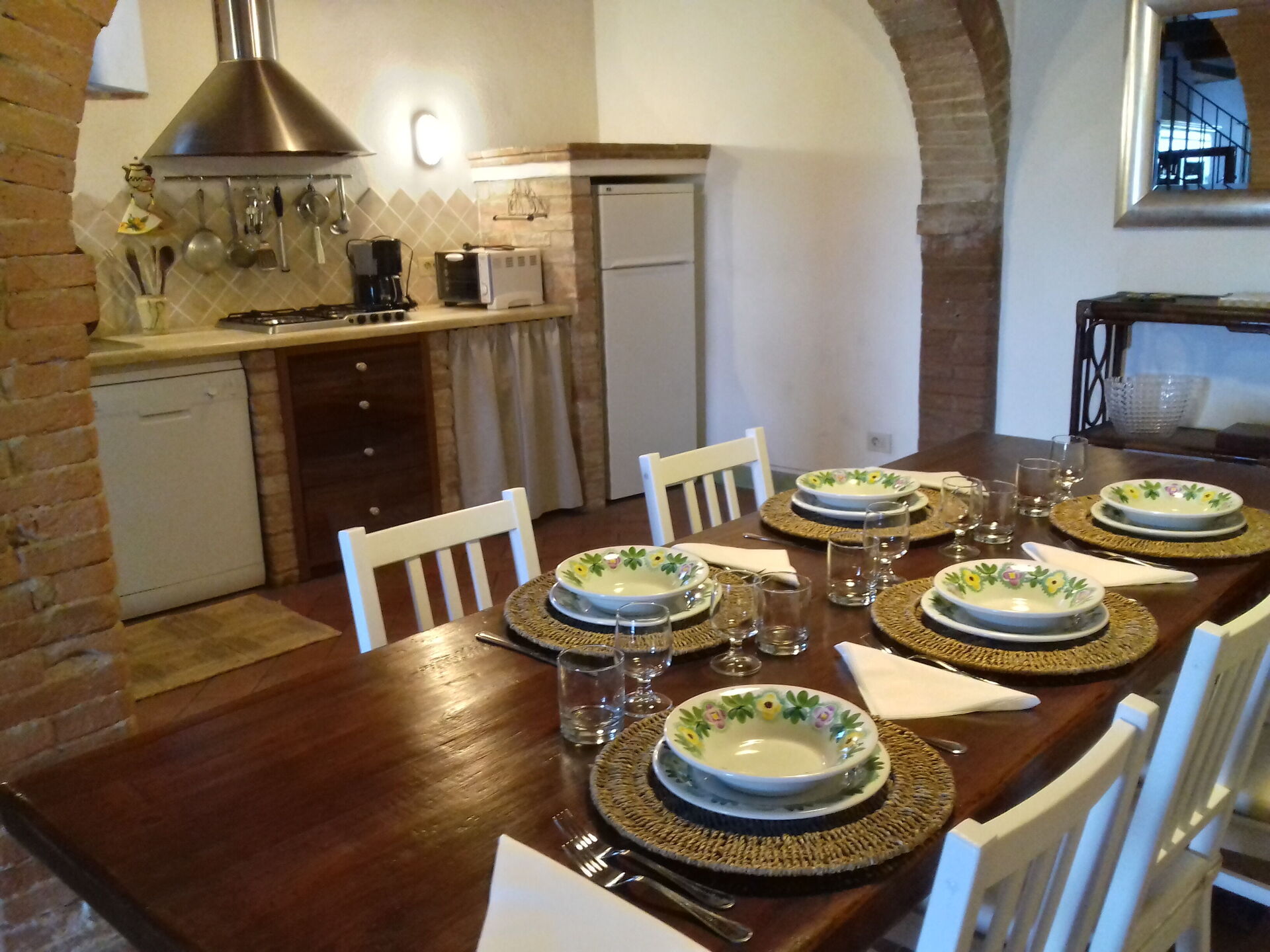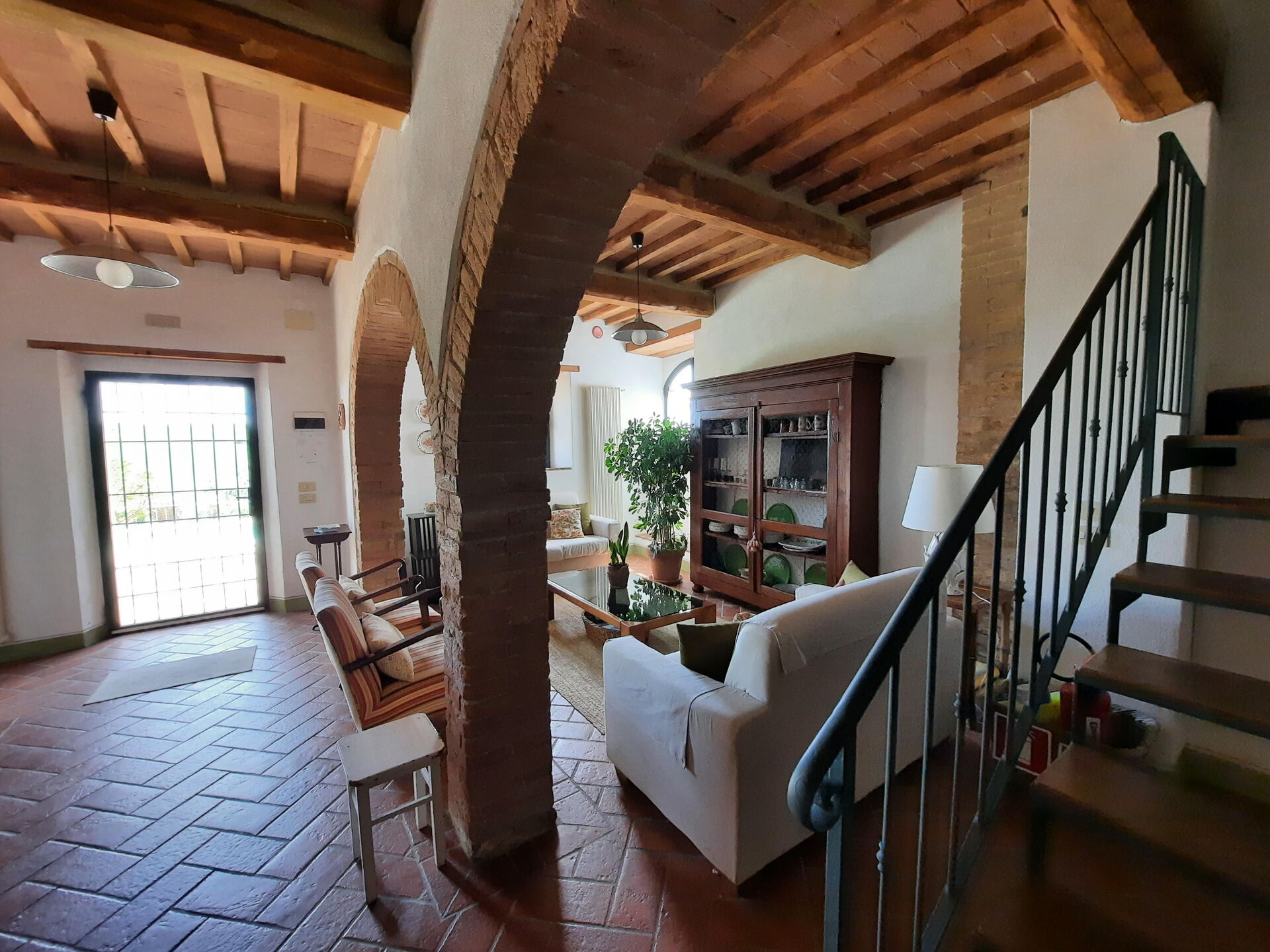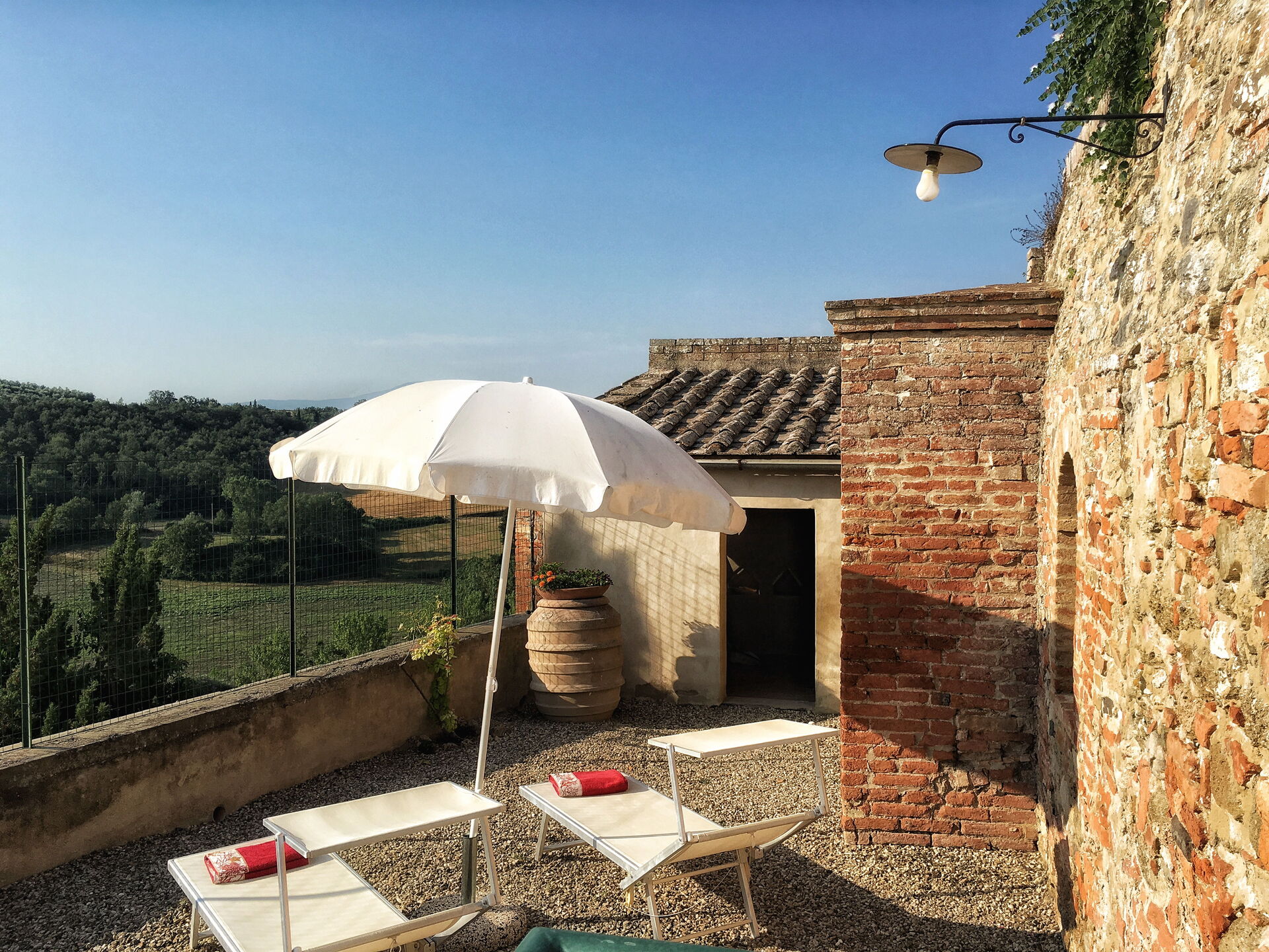 à l'arrivée à Casa Le Crete vous trouverez une jolie propriété, propre et bien entretenue, avec vue sur les collines parfaite pour des tranquilles vacances en Toscane. Peu importe comment vous passez vos journées... shopping, visites de musées, visites ou tout simplement en vous baladant à la campagne, quand vous arrivez à la maison, vous pouvez vous délasser à la piscine avec votre famille et vos amis et conclure au mieux un autre jour de vacances en Toscane. Pour votre plaisir, sur le terrain il y a une véranda et un barbecue. Si vous aimez cuisiner pour la famille et les amis il y a une cuisine bien equipée y compris machine à café, grille-pain, cuisinière et réfrigérateur, ainsi que, assez de vaisselle et couverts jusqu'à cinq personnes. Si vous préférez dîner «al fresco», il y a à votre disposition un patio entièrement meublé où vous pourrez profiter du beau temps tout en mangeant en plein air.