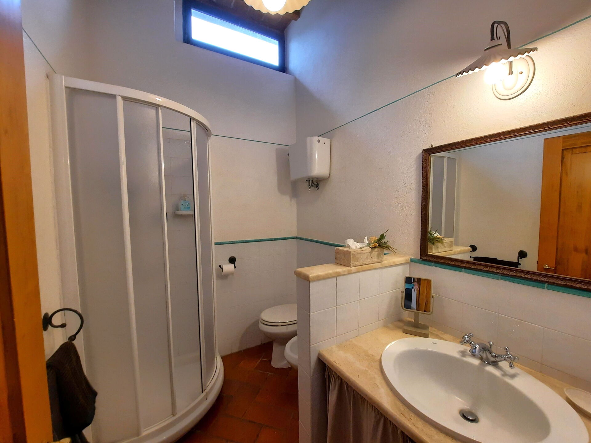 salle de bain 2: bassin, wc, bidet, douche, sèche-cheveux.