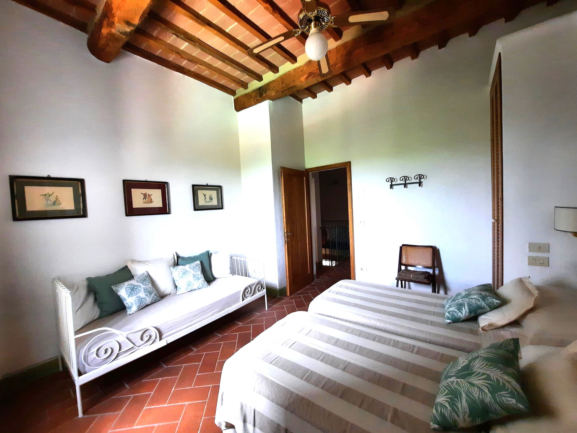 chambre à coucher 3: deux lits à une place (largeur: 0.9m, longueur: 1.9m), canapé-lit (largeur: 0.8m, longueur: 1.9m), internet WIFI, climatisation, ventilateur de plafond, deux fauteuils.
