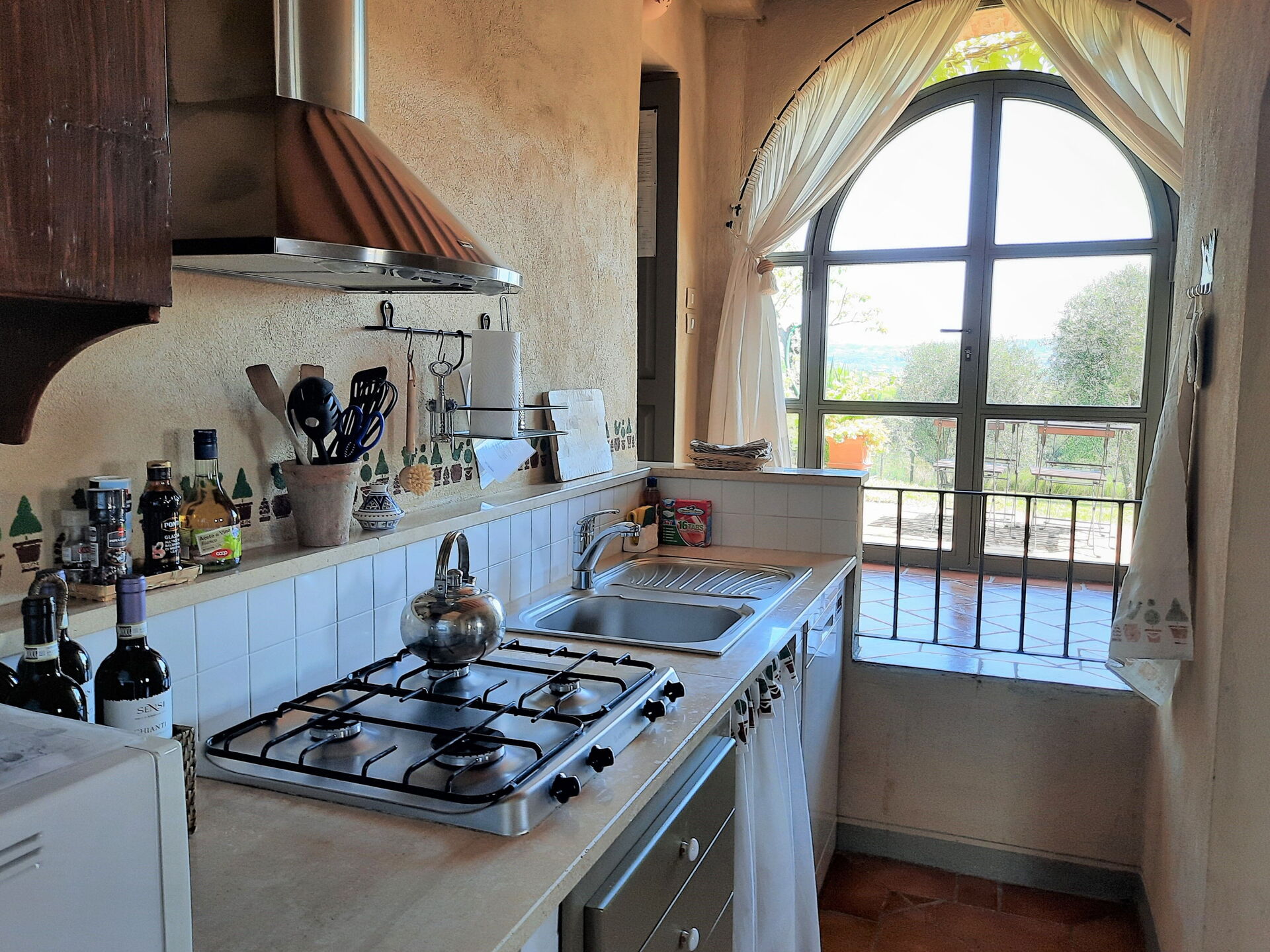 à votre arrivée à Villa San Giovanni vous trouverez une jolie propriété, propre et bien entretenue, avec vue sur les collines parfaite pour des vacances paisibles en Toscane. Pour votre plaisir vous trouverez une piscine privée où vous pouvez vous détendre tout en dégustant une bonne boisson fraîche après une épuisante journée de visites de musées. Pour votre plaisir, sur le terrain il y a un barbecue et un patio. Si vous aimez cuisiner pour la famille et les amis il y a une cuisine bien equipée y compris machine à café, four micro-onde, grille-pain, cuisinière et réfrigérateur, ainsi que, assez de vaisselle et couverts jusqu'à dix personnes. Si vous préférez dîner «al fresco», il y a à votre disposition une véranda entièrement meublée où vous pourrez profiter du beau temps tout en mangeant en plein air.