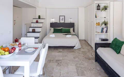 L'appartement se compose d'une pièce (espace ouvert) avec une kitchenette bien équipée, un balcon pour manger en plein air et une salle de bain avec baignoire.