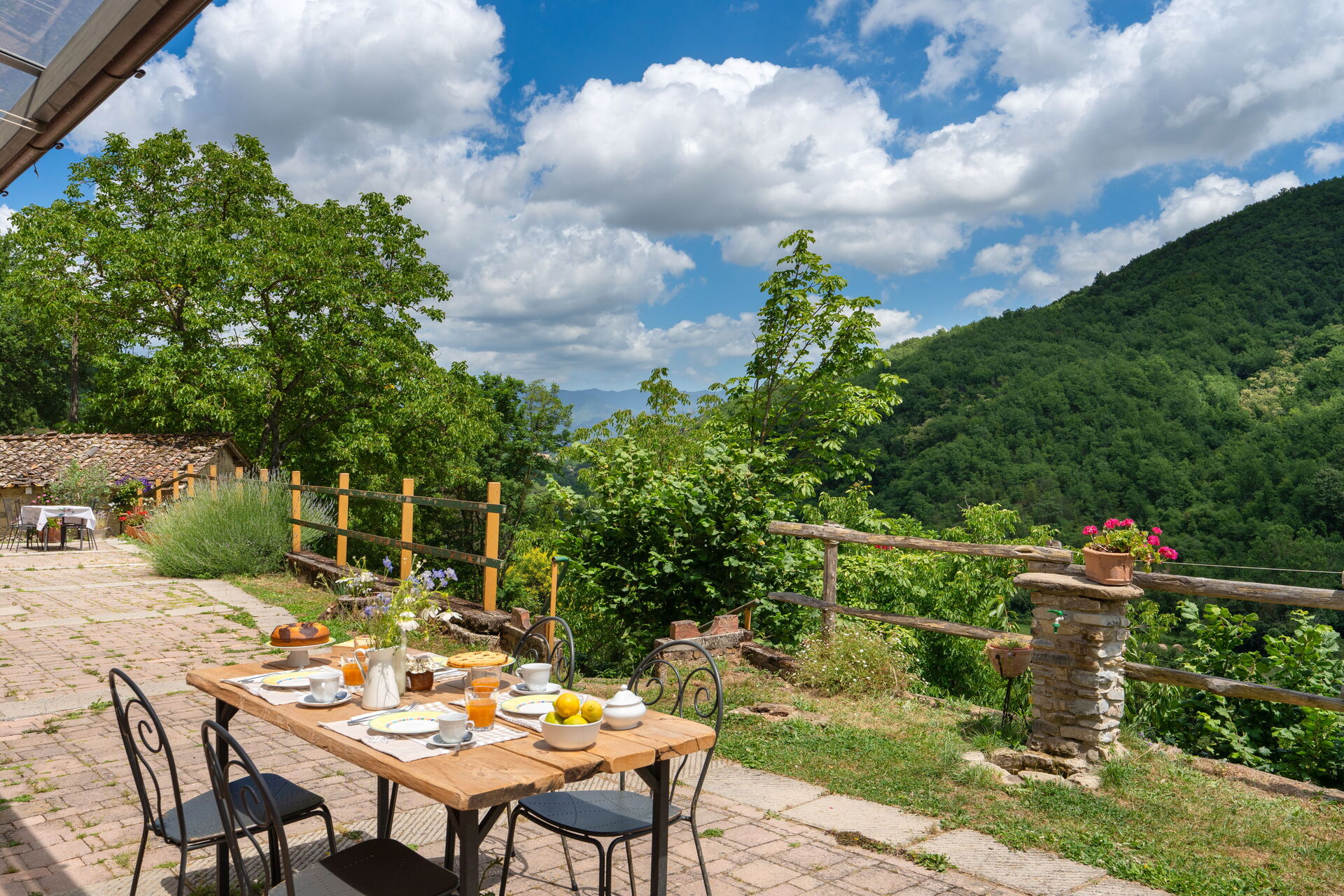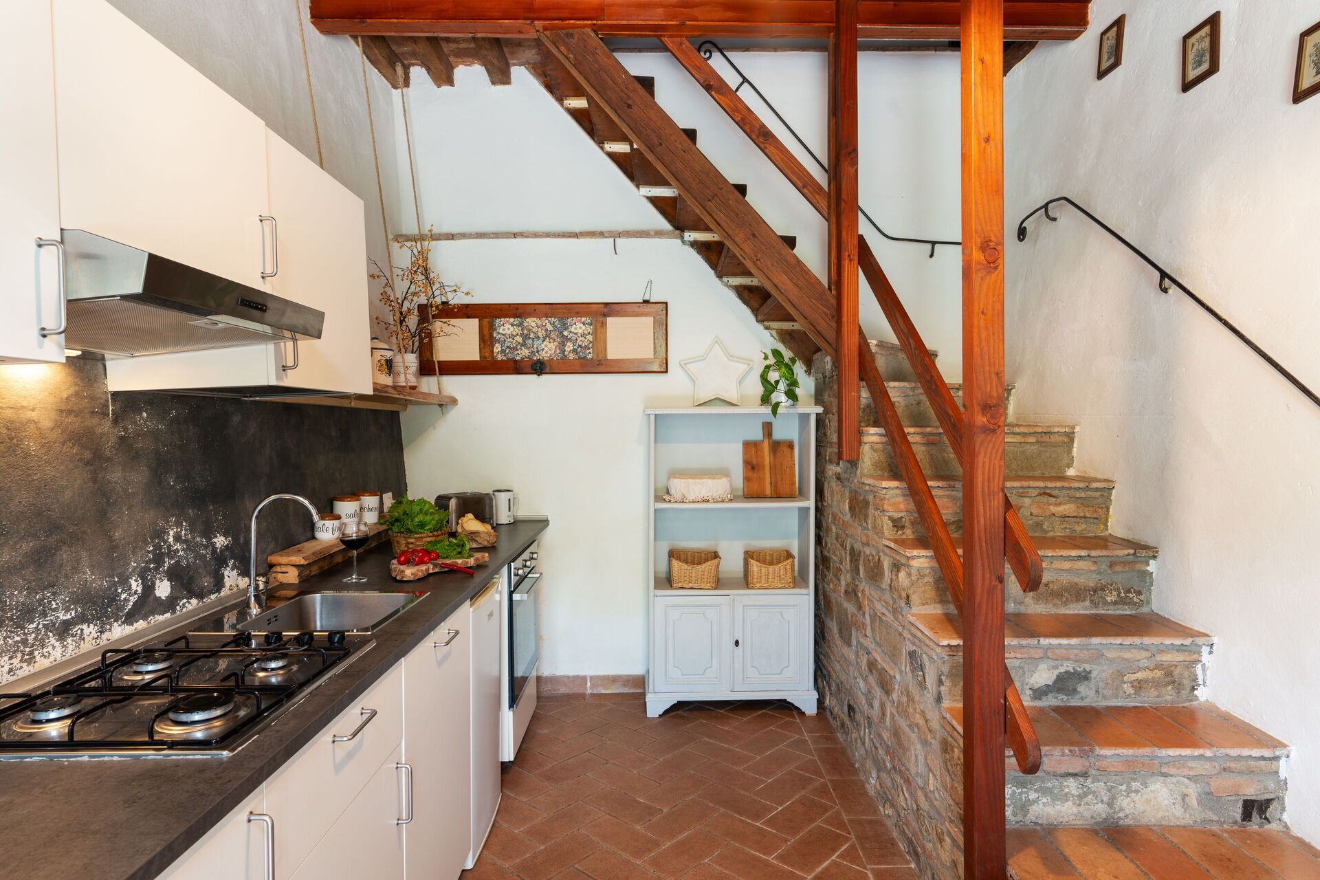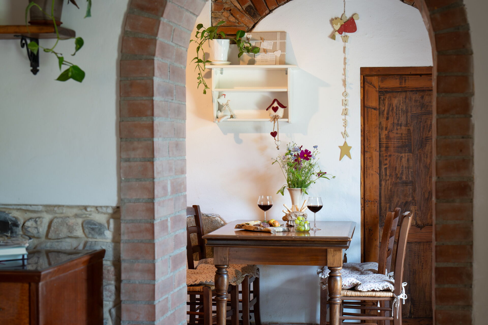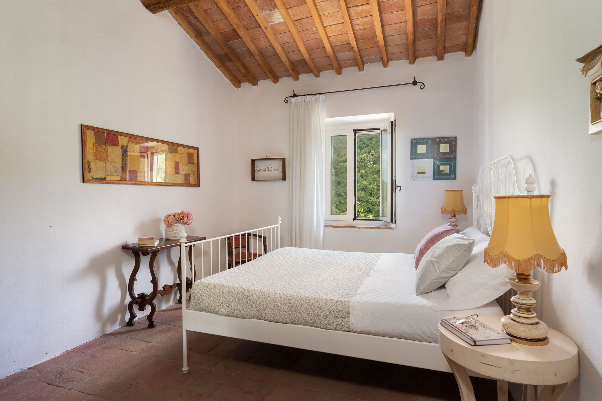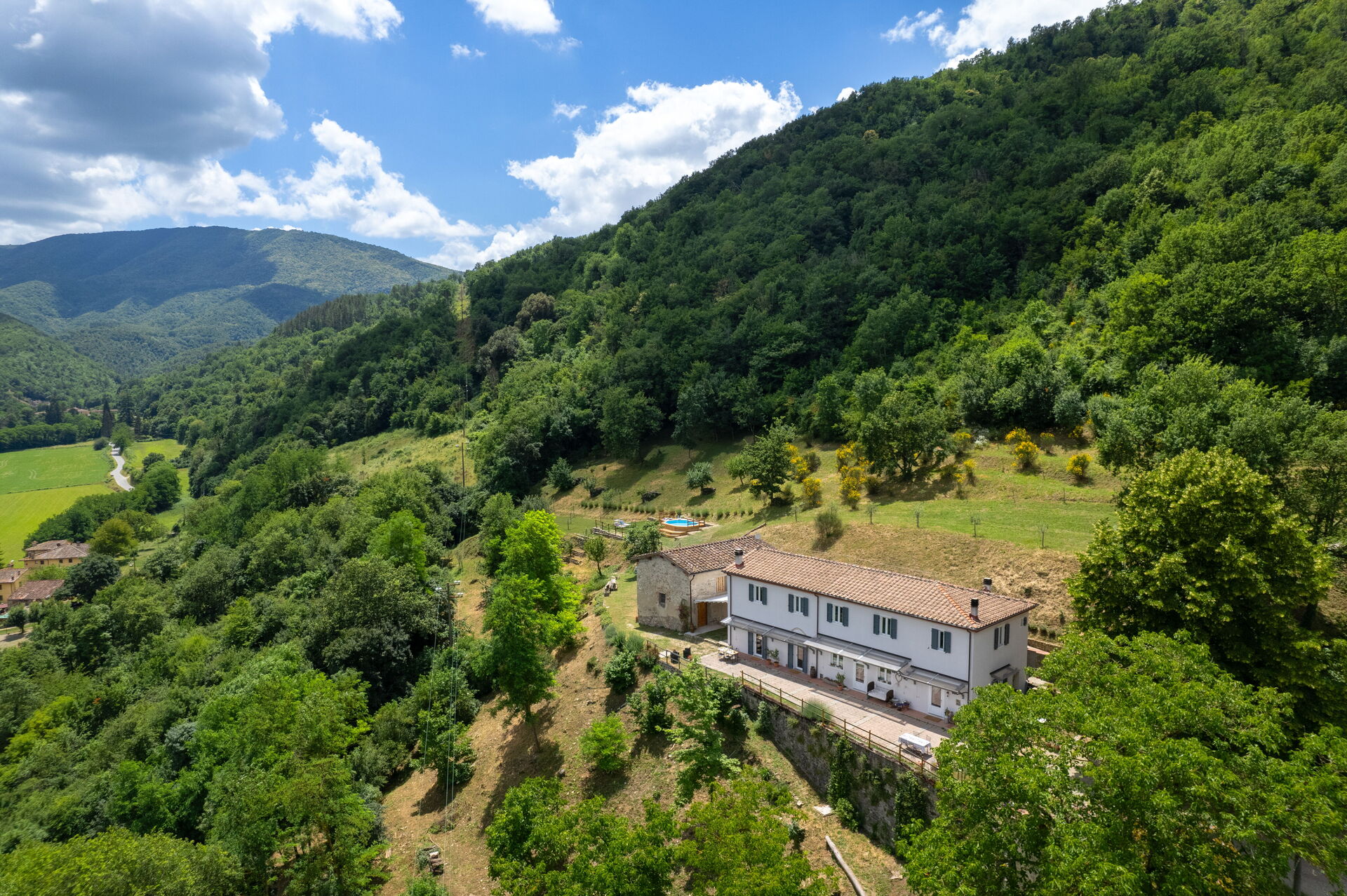 La propriété, accessible par environ 200 mètres de chemin de terre « blanc », est nichée dans la campagne toscane paisible, entourée de forêts de chênes et de châtaigniers. Une partie du bâtiment est occupée par les propriétaires, qui disposent de leur propre entrée privée.