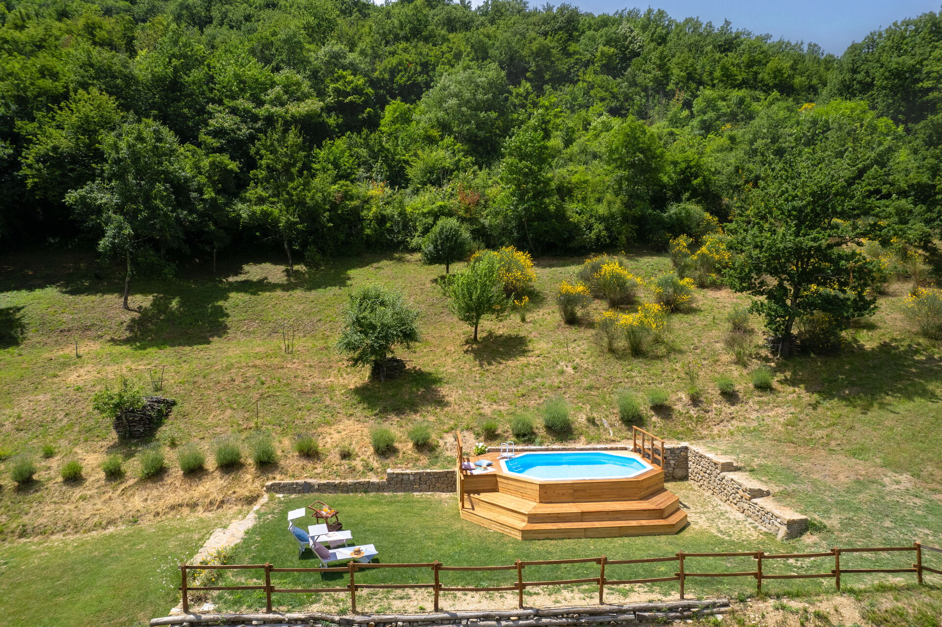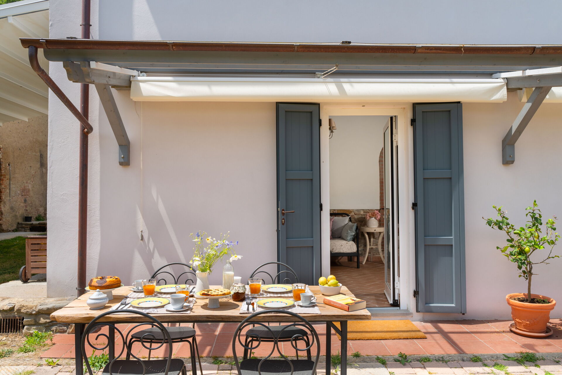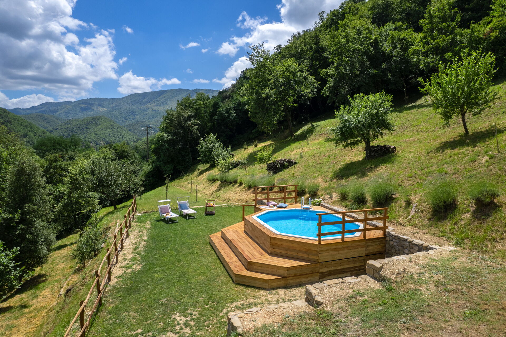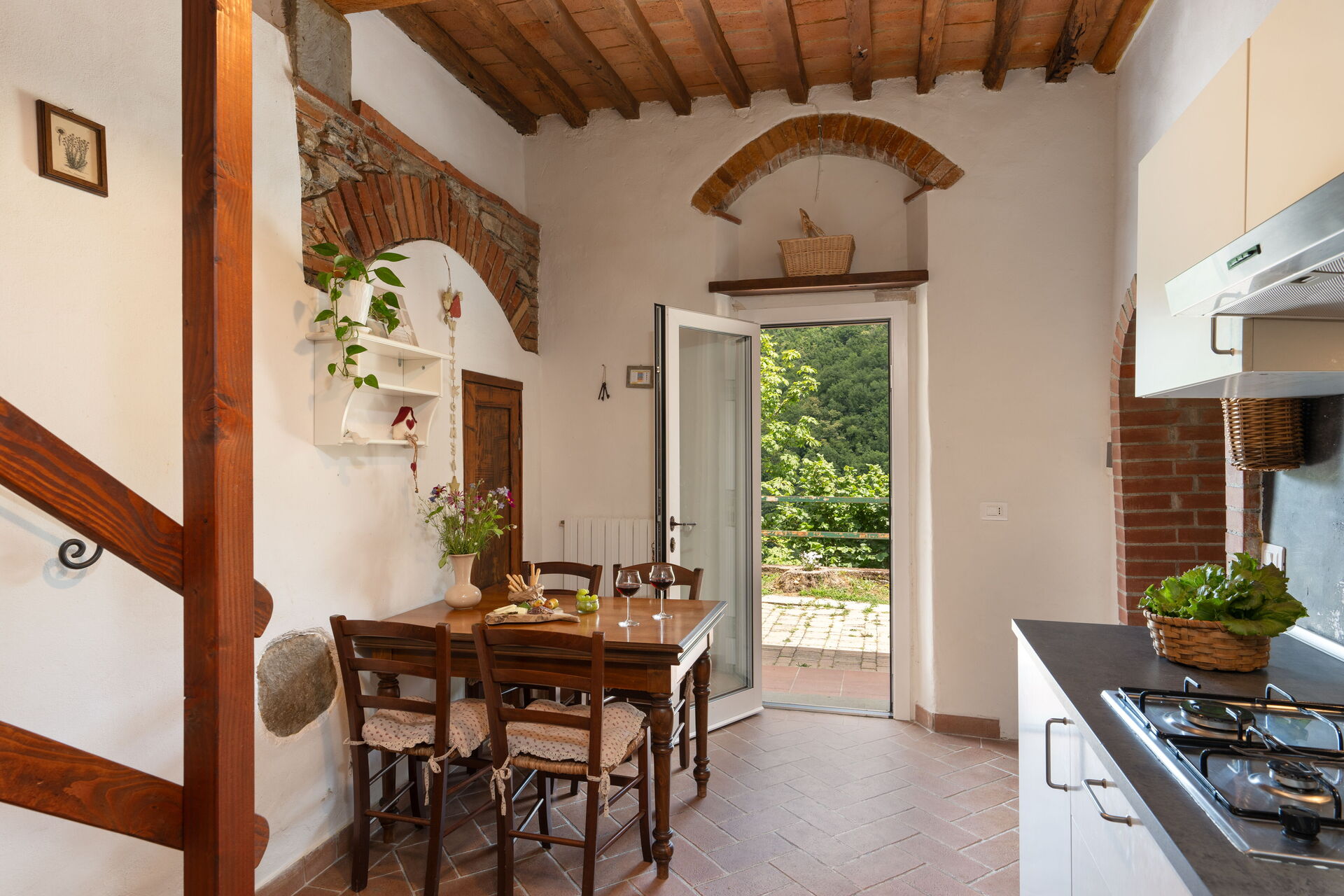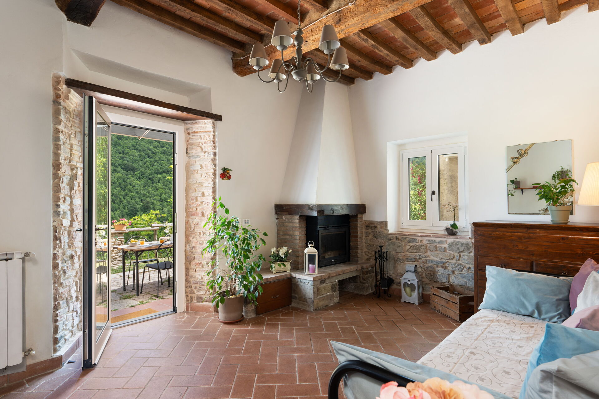 La propriété, accessible par environ 200 mètres de chemin de terre « blanc », est nichée dans la campagne toscane paisible, entourée de forêts de chênes et de châtaigniers. Une partie du bâtiment est occupée par les propriétaires, qui disposent de leur propre entrée privée.